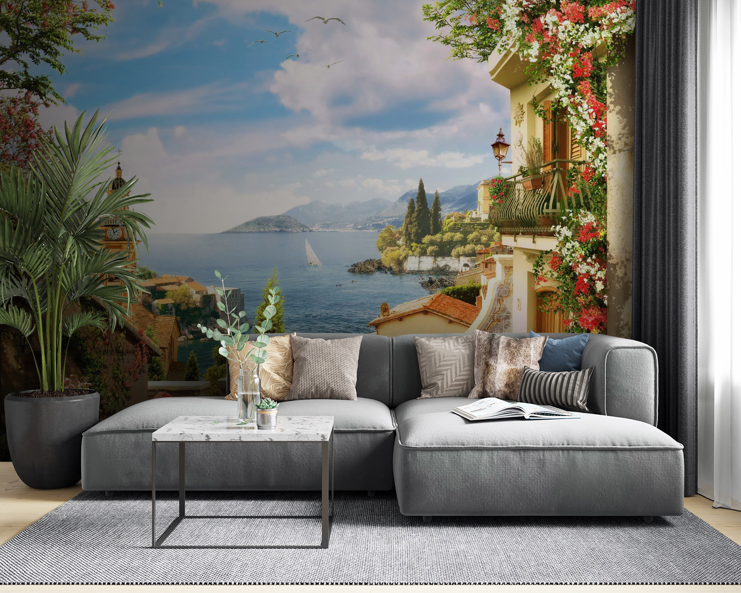 Imaginați-vă că pășiți într-un sat mediteranean liniștit de fiecare dată când intrați în camera dvs. – acest “Fototapet Pot with pink flowers” face exact asta! Este ca o mini-vacanță pe peretele tău. Florile roz vibrante cad în cascadă peste pereții de piatră superbi, având în fundal o priveliște uimitoare a unui peisaj marin însorit. Perfectă pentru a adăuga o notă de seninătate oricărui spațiu, aproape că ai impresia că poți auzi clopotul îndepărtat al bisericii sunând și valurile blânde lovindu-se de țărm. Fie că sunteți un fan al decorului contemporan sau doar iubiți piesele unice, această pictură murală va transforma orice perete simplu într-un paradis pitoresc. Și să fim sinceri, cine nu și-ar dori o bucată din acest peisaj de vis în casa sa? În plus, este un bun subiect de conversație – prietenii tăi te vor întreba cu siguranță unde ai găsit o piesă atât de uimitoare!