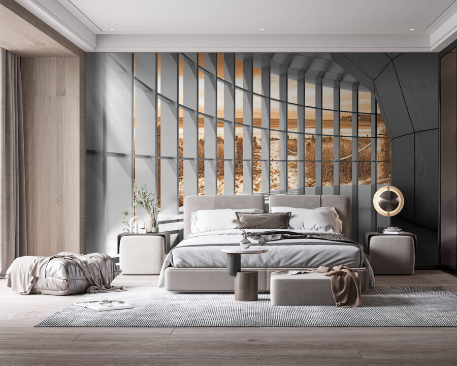 Transformați orice spațiu într-un paradis al luminii și al perspectivei cu această pictură murală uimitoare. Imaginați-vă că pășiți într-o cameră vastă, plină de ferestre, fiecare invitând soarele să danseze pe pereți. Jocul artistic al umbrelor creează un sentiment cald și confortabil, aproape ca și cum ați fi învelit într-o pătură moale într-o după-amiază leneșă. Această pictură murală este perfectă pentru a stârni conversații – oaspeții se vor simți ca și cum ar fi fost transportați într-un loc de vis, în timp ce își sorb cafeaua. Fie că este vorba de o cameră de zi, un dormitor sau un studio de creație, această pictură murală adaugă o notă de farmec și un sentiment de evadare, făcând ca momentele de zi cu zi să pară puțin mai speciale. În plus, cui nu-i place o priveliște deschisă atunci când este blocat în interior?