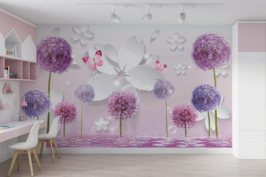 Imaginați-vă că intrați într-o cameră și simțiți instantaneu că ați pășit într-un peisaj de vis violet liniștit! Acest mural “Flori purpurii cu fluturi și reflexii” face exact acest lucru. Este ca un colț liniștit într-o grădină fantastică, unde florile purpurii moi și pufoase și fluturii delicați se întrepătrund în culori. Reflexiile adaugă o notă magică, aproape ca și cum florile sărută ușor apa. Perfectă pentru a crea o atmosferă liniștitoare în orice cameră – gândiți-vă la dormitor, sufragerie sau chiar un colț de lectură confortabil. De fiecare dată când vă uitați la ea, vă veți trezi respirând adânc și relaxat, ca și cum aproape ați putea mirosi florile și simți o briză ușoară. S-ar putea chiar să vă surprindeți visând cu ochii deschiși puțin mai mult decât de obicei. Dacă ați căutat o modalitate de a aduce o notă de natură și seninătate în interior, această pictură murală pare că universul șoptește: “Asta este!”