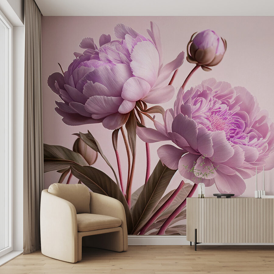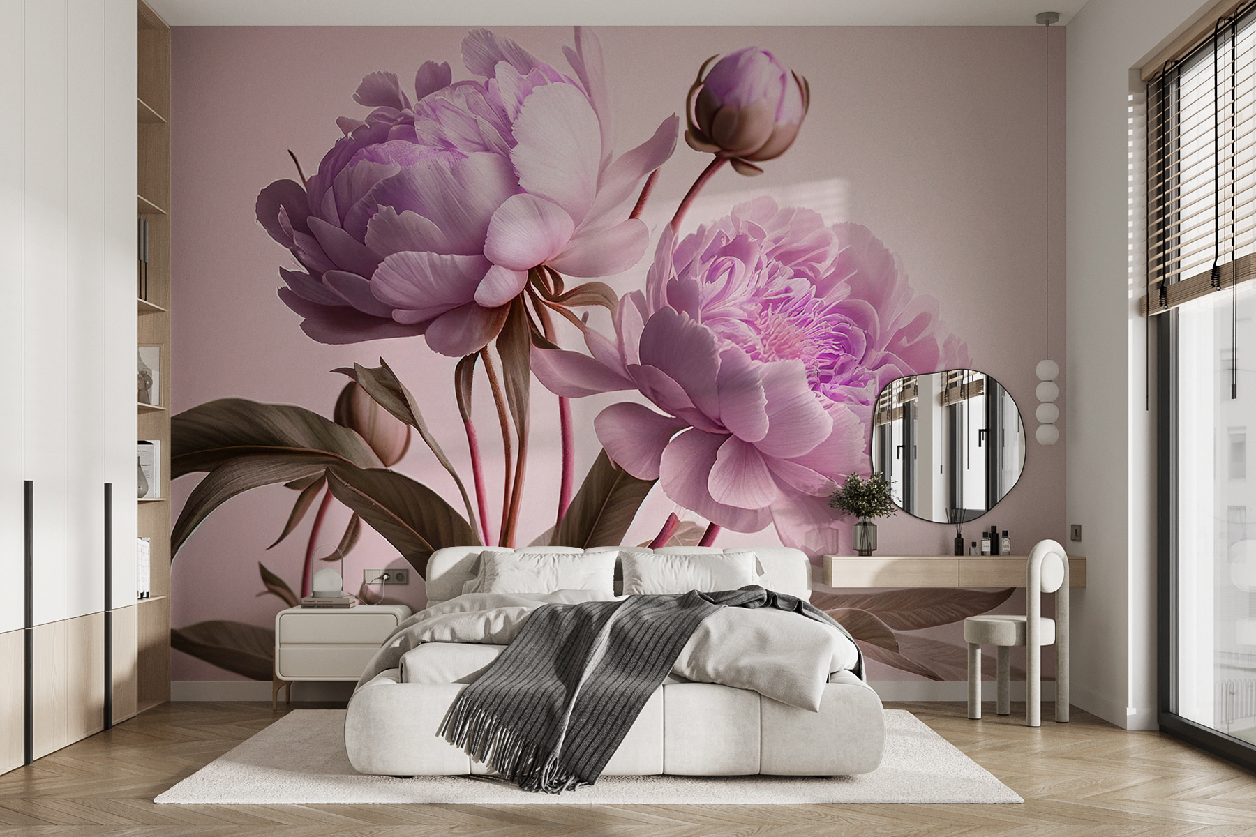 Iar acestea nu sunt flori oarecare; sunt bujori. Cunoscute drept regina grădinii, acestea simbolizează romantismul și prosperitatea. Așadar, nu este doar un chip frumos – are o semnificație. Fie că este pentru un living confortabil, un dormitor liniștit sau chiar un birou șic, această pictură murală adaugă o notă de rafinament, cu cantitatea potrivită de fantezie.