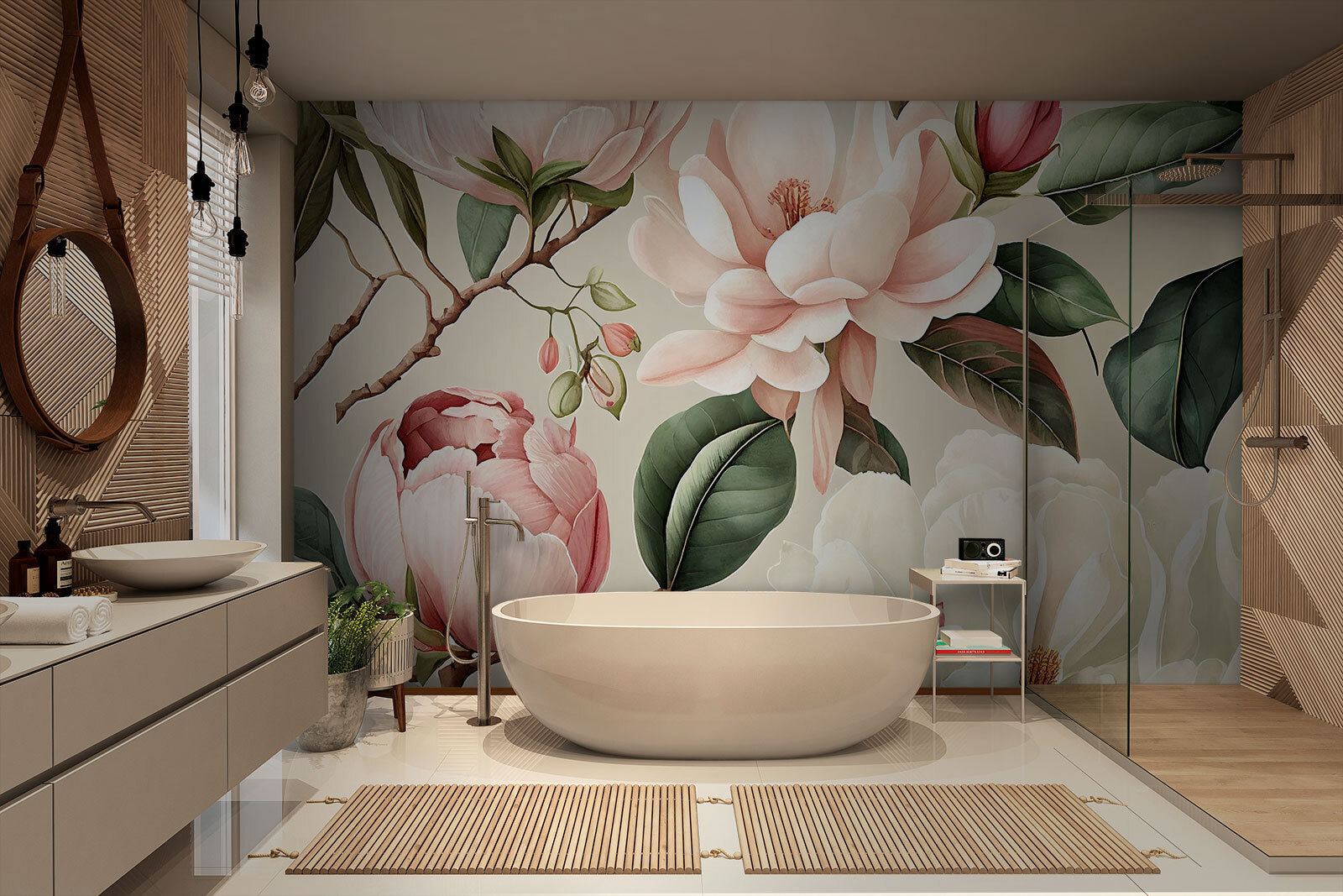Vopselele moi de acuarelă aduc o atmosferă senină și răcoritoare. Perfect pentru oricine își dorește un refugiu de tip grădină în propria casă. Fie că sunteți un fan al florilor sau pur și simplu iubiți decorul unic, de designer, această pictură murală este o modalitate minunată de a vă ridica zona de locuit cu căldură și eleganță.