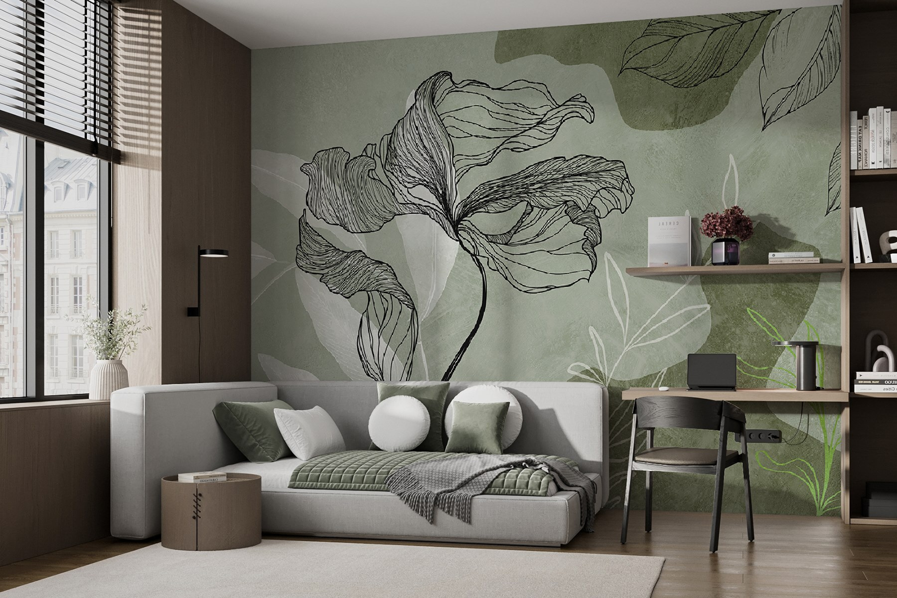 Imaginați-vă că intrați într-o cameră și sunteți întâmpinați de un dans elegant de flori pe perete. Această pictură murală, numită pe bună dreptate “Desenul unei flori”, aduce un strop din farmecul naturii chiar în spațiul dvs. de locuit. Este ca și cum ai avea o primăvară permanentă – mai puțin alergiile. Liniile complicate și verdele liniștitor dau senzația că floarea s-ar putea legăna într-o briză ușoară. Perfectă pentru cei care visează cu ochii deschiși, această operă de artă șoptește seninătate. Fie că este amplasată într-un colț confortabil sau pe un hol aerisit, ea adaugă acea notă de evadare liniștită pe care toată lumea o dorește. Aruncați câteva perne confortabile și priviți cum această pictură murală transformă orice cameră obișnuită într-un refugiu liniștit.