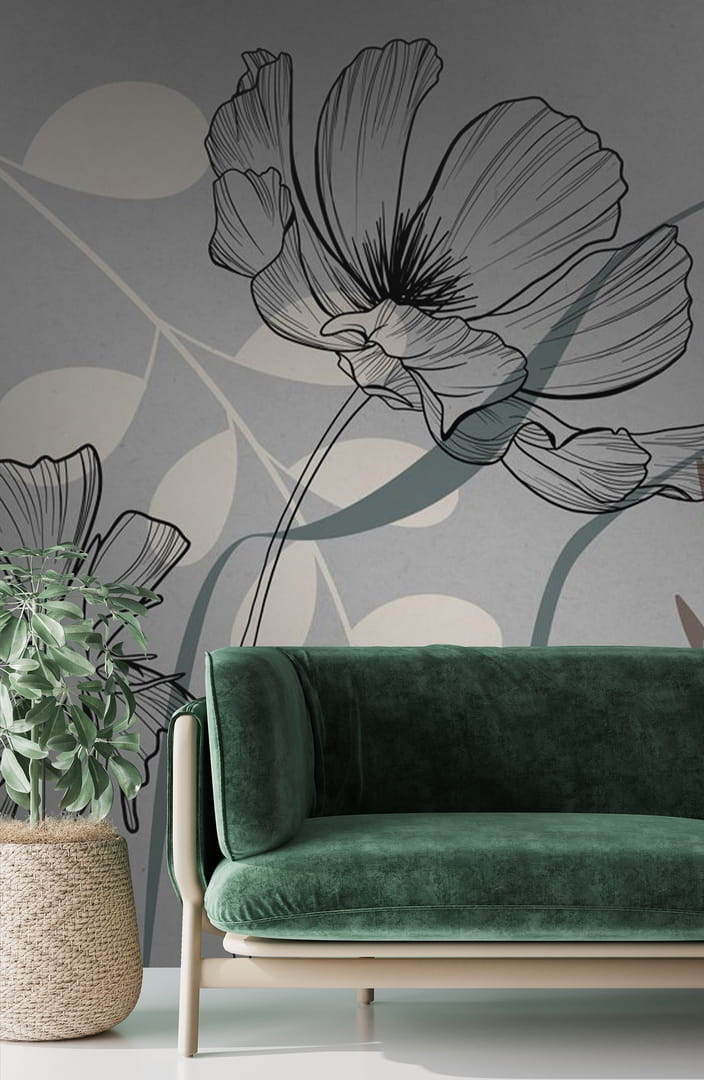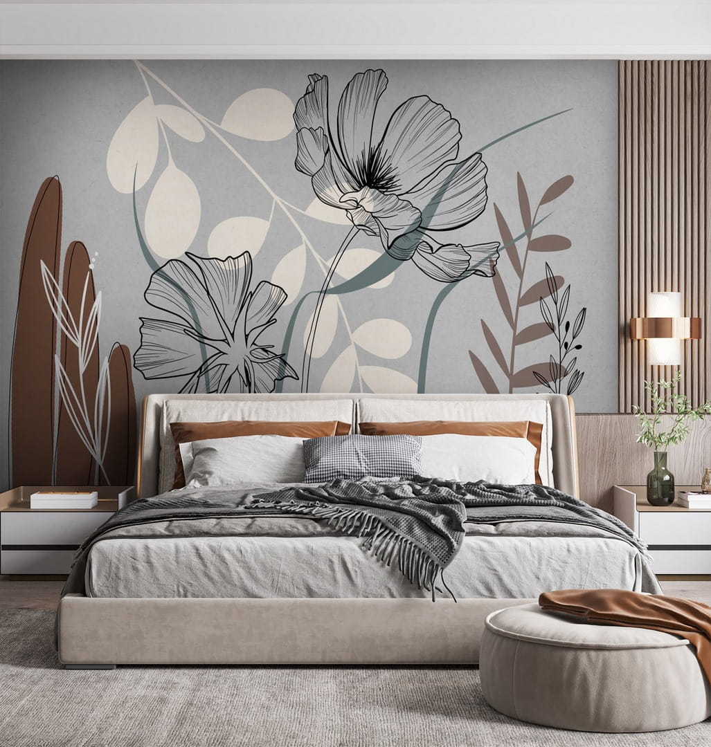 Aduceți o briză de aer proaspăt în interior cu acest tapet uimitor, decorat cu flori și frunze delicate. Culorile delicate și liniile artistice creează o atmosferă calmă, perfectă pentru un colț confortabil de lectură sau un living plin de viață. Imaginați-vă cum vă cufundați în fotoliul preferat, cu o băutură caldă în mână, înconjurați de această frumusețe florală. Este ca și cum ați avea o grădină care nu se ofilește niciodată – nu este nevoie să o udați! Designul unic al acestui fototapet adaugă personalitate și farmec, făcând orice spațiu să pară instantaneu mai primitor. Imaginați-vă doar complimentele!