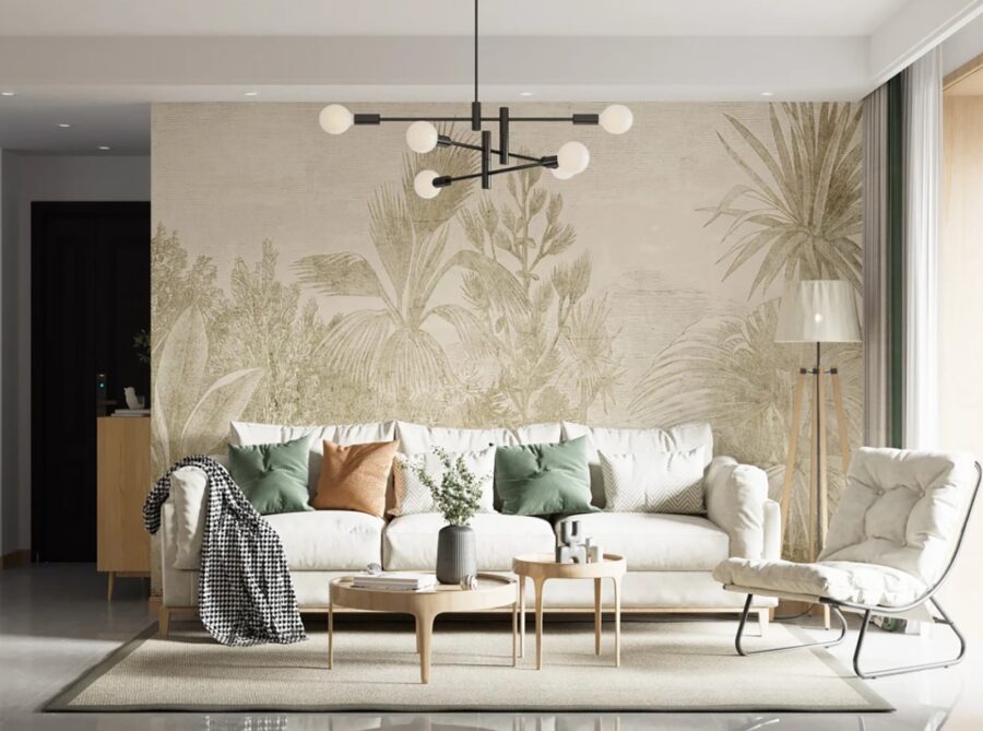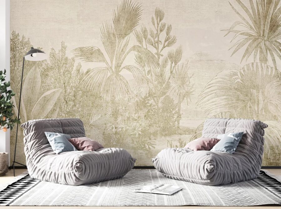 Transformați orice cameră într-un refugiu liniștit cu acest fototapet uimitor, cu modele elegante de plante. Imaginați-vă că pășiți într-o junglă de vis chiar din sufrageria dvs. – este ca o mini-vacanță fără protecție solară! Tonurile moi, neutre, creează o atmosferă calmă, perfectă pentru relaxare după o zi lungă. Acest fototapet aduce natura în interior, adăugând o notă de căldură și un suflu de aer proaspăt. Imaginați-vă un colț confortabil de lectură, înconjurat de verdeață, unde fiecare pagină pare puțin mai magică. O îmbunătățire instantanee a atmosferei? Absolut! Pregătiți-vă să invitați puțină pace și liniște în spațiul dvs.