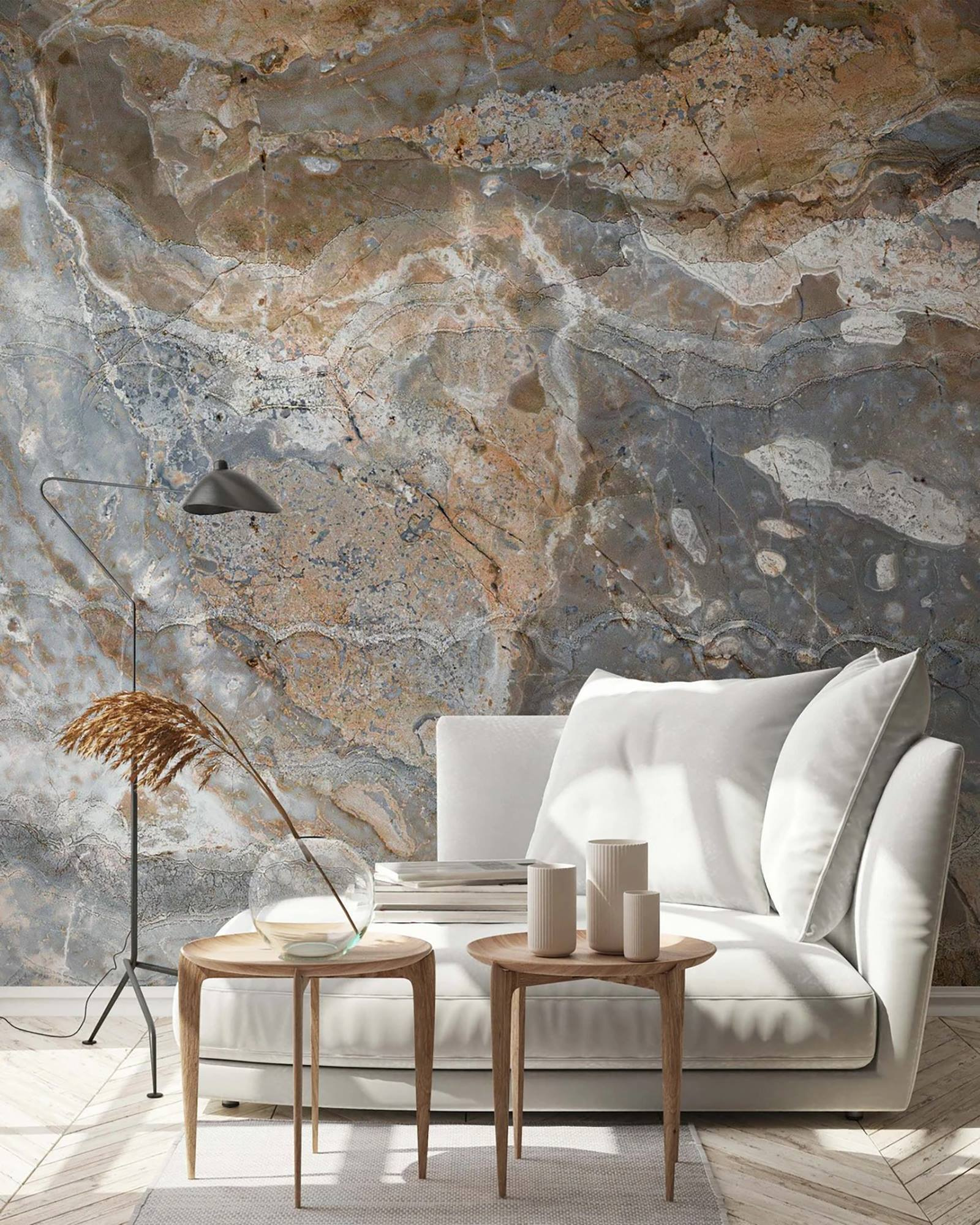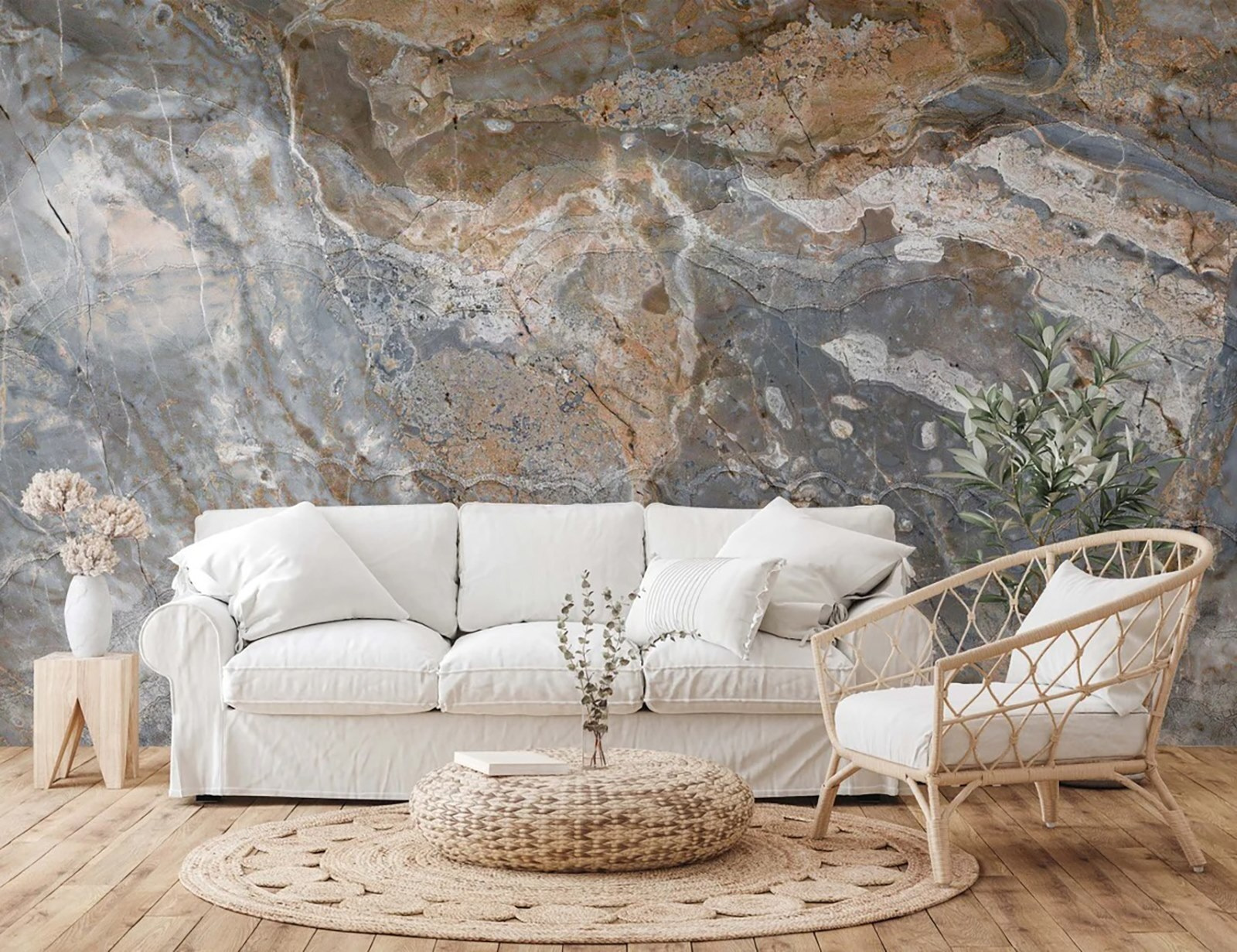 Transformați-vă spațiul într-un refugiu confortabil cu acest perete mural uimitor, care prezintă o textură de marmură învârtită în tonuri calde de pământ. Imaginați-vă că intrați într-o cameră în care pereții seamănă mai mult cu un peisaj liniștit decât cu un simplu gips-carton. Este ca și cum frumusețea naturii v-ar înfășura în jurul dvs., invitându-vă la relaxare.