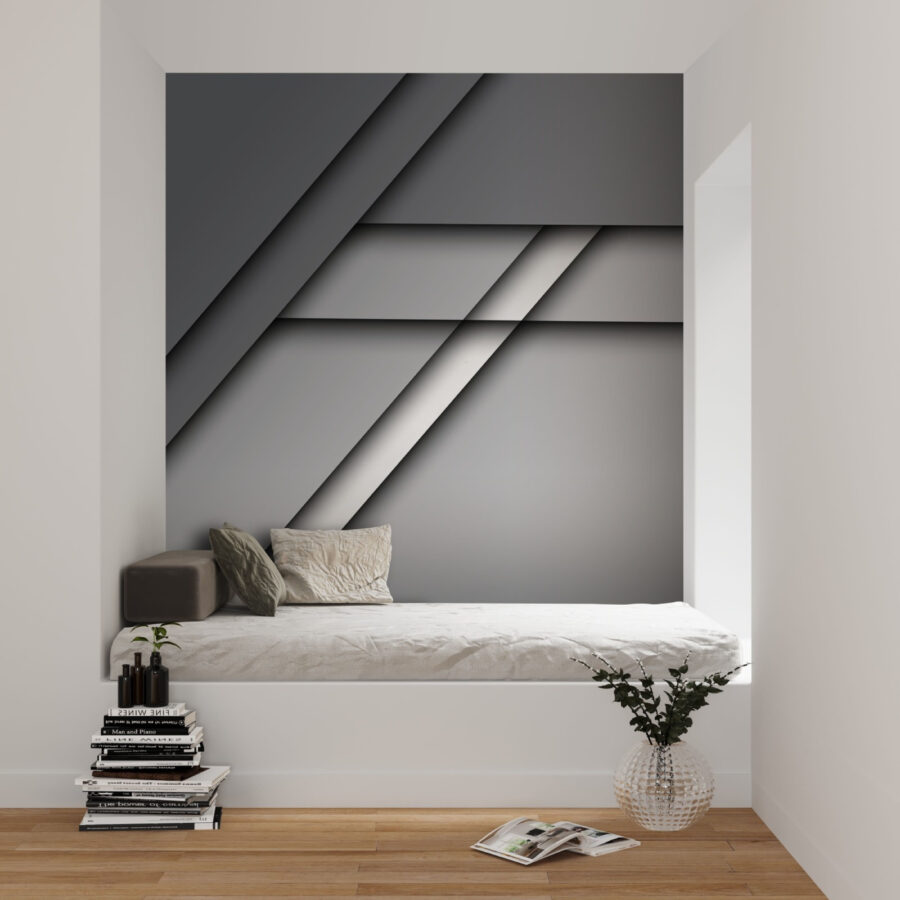 Transformați un perete gol într-un subiect de conversație elegant cu această pictură murală uimitoare. Interacțiunea bogată de gri și alb creează un fundal sofisticat care nu este deloc plictisitor. Fie că este vorba de un living confortabil sau de un birou șic, această pictură murală sporește subtil atmosfera. Imaginați-vă sorbind cafea în timp ce vă bucurați de calmul pe care îl aduce – ca îmbrățișarea unui pulover preferat într-o zi răcoroasă. Și, hei, se potrivește perfect cu un strop de mobilier sau plante colorate. Cine ar fi crezut că un design simplu poate fi atât de răcoritor? Totul este să creezi un spațiu în care să te simți bine.
