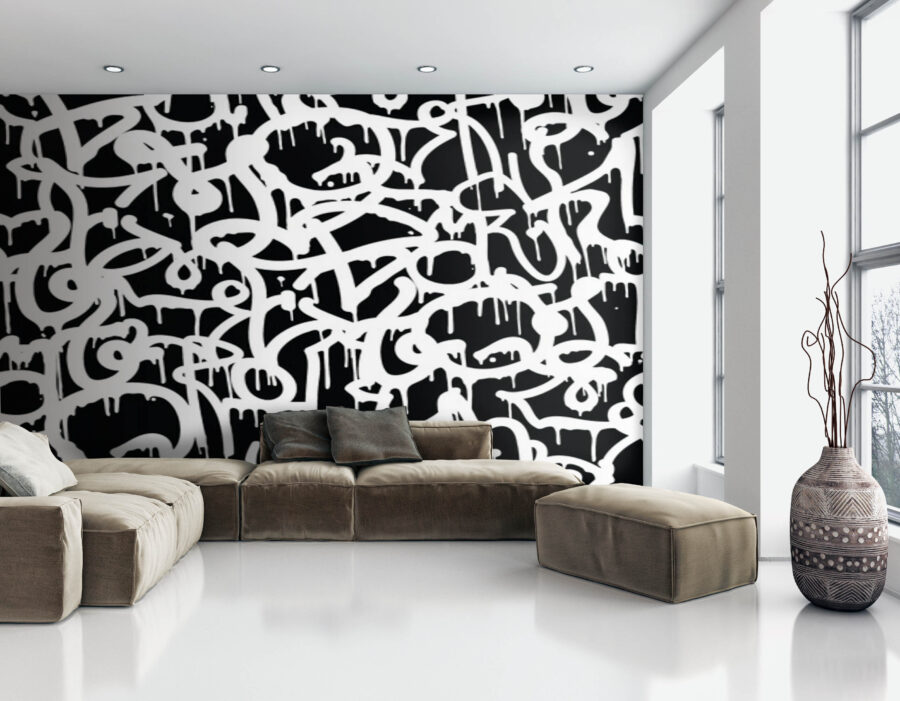 Ați intrat vreodată într-o cameră și ați simțit că pereții vorbesc? Acest mural „Black and White Graffiti” face exact asta. Cu amestecul său plin de viață de linii albe abstracte, care picură pe un fundal negru elegant, adaugă un plus artistic care poate face chiar și cele mai plictisitoare spații să pară o galerie de artă avangardistă. Imaginați-vă că sorbiți o cafea, priviți acest mural și vă simțiți inspirați să vă eliberați artistul interior. Sau poate este doar un subiect de conversație pentru prietenii dvs. – „Ce înseamnă asta?” Lăsați-l să vă inspire idei sau pur și simplu să înveselească un colț plictisitor. Nu este doar decor; este o experiență care așteaptă să se întâmple! Este îndrăzneț, puțin jucăuș și perfect pentru oricine iubește detaliile unice în casa sa.