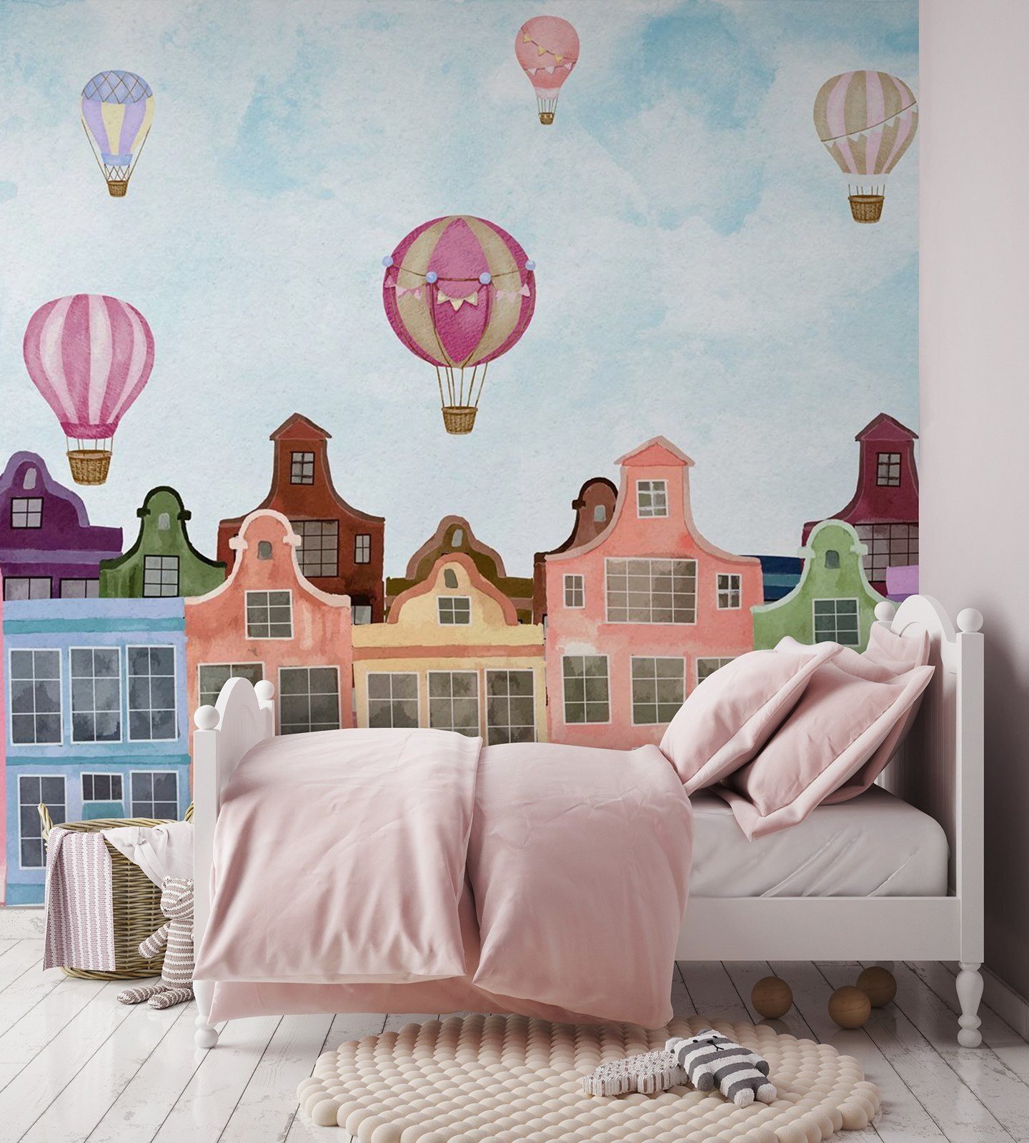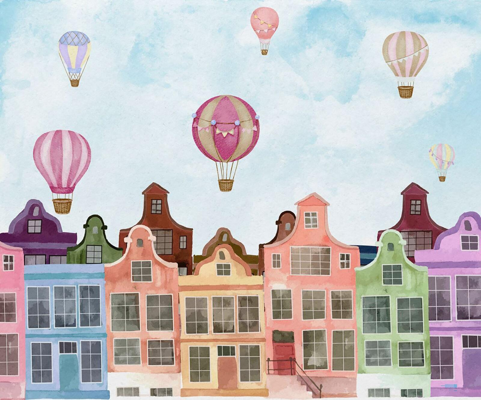 Fiecare privire aruncată asupra acestui fototapet te poate duce într-o mini-evadare. Imaginează-ți că bei cafeaua în timp ce aceste clădiri vibrante te privesc vesel, făcând diminețile banale să pară speciale. Sau imaginează-ți cum această frumusețe ar putea inspira povestiri în timpul reuniunilor de familie – fiecare are propria aventură cu baloane. Cu amestecul său fermecător de culori, acest fototapet îți va ridica fără efort moralul, la fel ca baloanele cu aer cald care plutesc într-o zi însorită. Perfect pentru un colț confortabil sau pentru acel perete care pare puțin singuratic, nu este doar un decor – este o experiență care așteaptă să se întâmple.