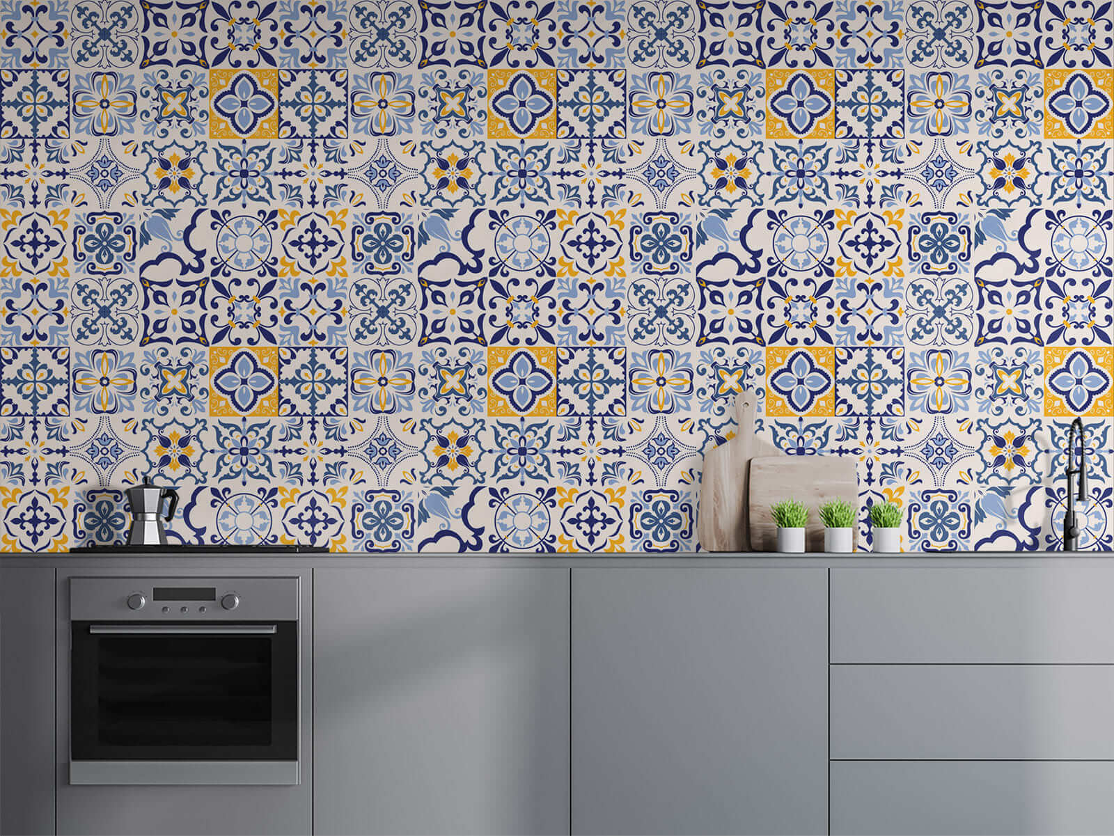 Transformați-vă spațiul cu acest fototapet vibrant, cu un model uimitor de plăci albastre și galbene. Este ca și cum ați aduce un strop din farmecul Mediteranei direct în casa dvs. Imaginați-vă că vă aflați într-o cafenea confortabilă din Spania, savurând o cafea în timp ce admirați frumoasele modele din jurul dvs. Formele geometrice dansează pe perete, adăugând o notă jucăușă care vă bucură de fiecare dată când treceți pe lângă ele. Este perfect pentru a înveseli o cameră mohorâtă sau pentru a crea un fundal plin de viață pentru următoarea dvs. întâlnire. Imaginați-vă prietenii admirându-vă gustul, în timp ce vă bucurați în secret de gloria alegerii dvs. fabuloase de decor. De ce să vă mulțumiți cu pereți plictisitori când puteți avea o operă de artă care pare vie?