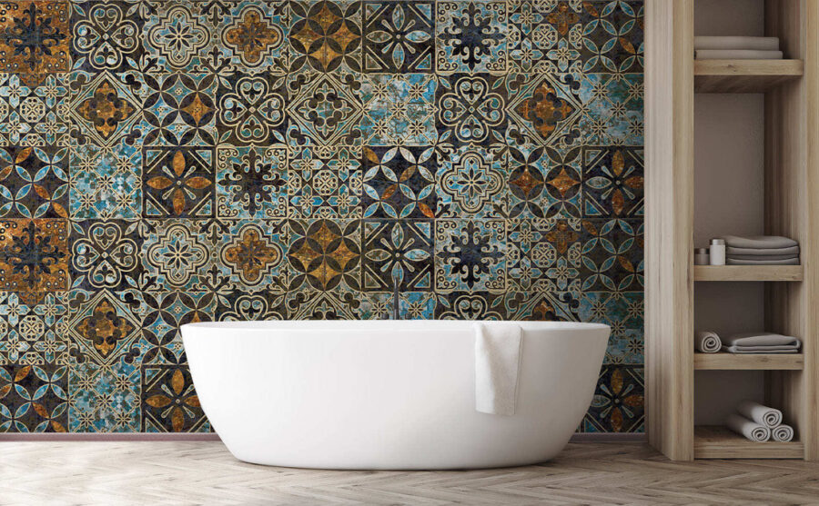 Căutați să dați pereților dvs. un pic de caracter? Aruncați o privire la aceste “Fototapet with Ornate Vintage Pattern and Floral Tiles”. Este ca și cum ai păși într-o cafenea confortabilă, de epocă, de fiecare dată când intri în camera ta. Plăcile florale complicate adaugă un strop de farmec din lumea veche, perfect pentru a crea un spațiu cald și primitor.