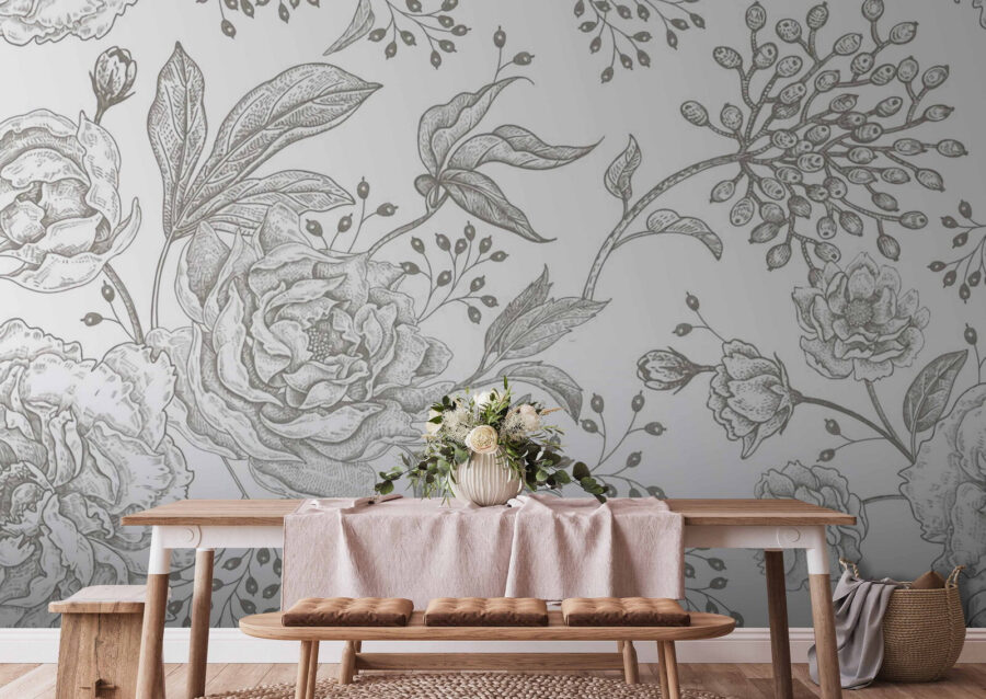 Transformați-vă spațiul cu acest tapet uimitor, cu motive florale delicate în nuanțe suave. Imaginați-vă că vă treziți înconjurați de o cascadă delicată de bujori și muguri grațioși, ca și cum natura însăși ar fi decis să se instaleze pe peretele dvs. Acest tapet nu doar înfrumusețează, ci este ca o gură de aer proaspăt pentru camera dvs. Perfect pentru un colț confortabil sau pentru o atmosferă liniștită în dormitor, acesta invită la calm cu culorile sale suave și detaliile complexe. În plus, este un excelent subiect de conversație! Prietenii te vor întreba de unde ai găsit această capodoperă florală de vis. Adu puțină magie de grădină în interior – cine nu și-ar dori asta?