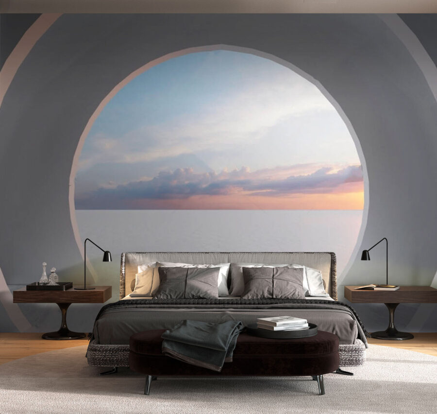 Pășiți într-o lume a posibilităților de vis cu această pictură murală, “Cameră albă cu o ușă circulară”. Imaginați-vă că spațiul dvs. se simte mai expansiv, ca o invitație blândă la explorare. Culorile moi și liniile curate dansează jucăuș, creând o atmosferă senină care șoptește relaxare oricui intră. Imaginați-vă sorbind cafea în lumina dimineții, privind prin acea ușă stilizată spre un orizont plin de potențial.