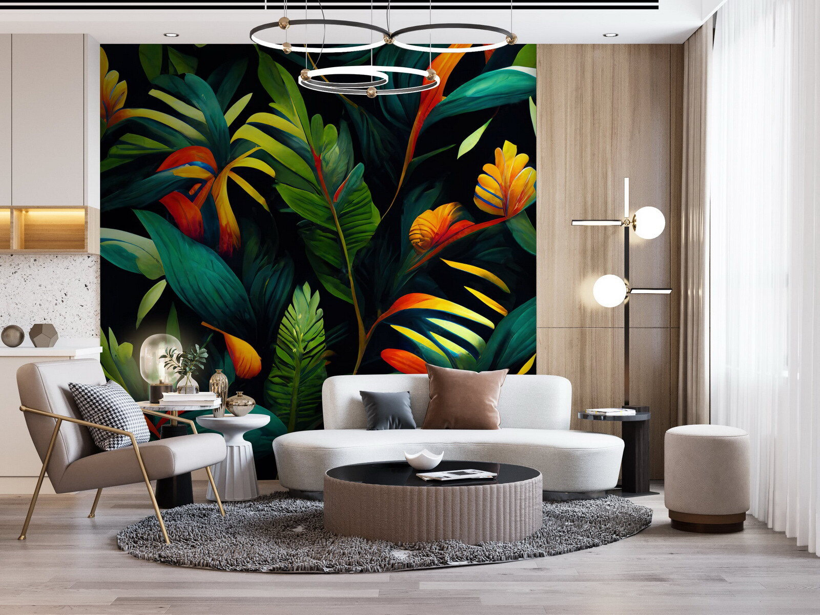 Transformați orice cameră într-o oază tropicală cu aceste picturi murale vibrante. Imaginați-vă că pășiți în fiecare zi într-un paradis luxuriant, unde verdele intens și exploziile de culori calde vă fac să vă simțiți ca într-o vacanță permanentă. Amestecul jucăuș de frunze și flori aduce viață și energie pereților dvs., creând un vibe vesel care face chiar și diminețile de luni să pară mai luminoase. Oaspeții s-ar putea să se străduiască să se concentreze asupra conversației pe măsură ce se pierd în această țară a minunilor botanice. Perfect pentru o cameră de zi confortabilă sau un spațiu de birou plin de viață, este ca și cum ai adăuga o mică bucată de natură în casa ta. Îmbrățișați bucuria de a trăi în plină floare.