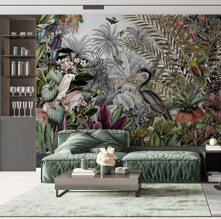 Verdele bogat și nuanțele jucăușe ale creaturilor exotice creează un festin vizual care stârnește bucurie. Este ca și cum ai avea o mini-vacanță chiar pe pereții tăi. Prietenii s-ar putea chiar să treacă pe aici doar pentru a se minuna de ea. Serios, cine nu ar vrea să se relaxeze la umbra palmierilor ilustrați? În general, această pictură murală nu este doar un decor; este o vibrație care face ca orice zi să fie un pic mai extraordinară. Cine știe, ar putea chiar să inspire o escapadă spontană!