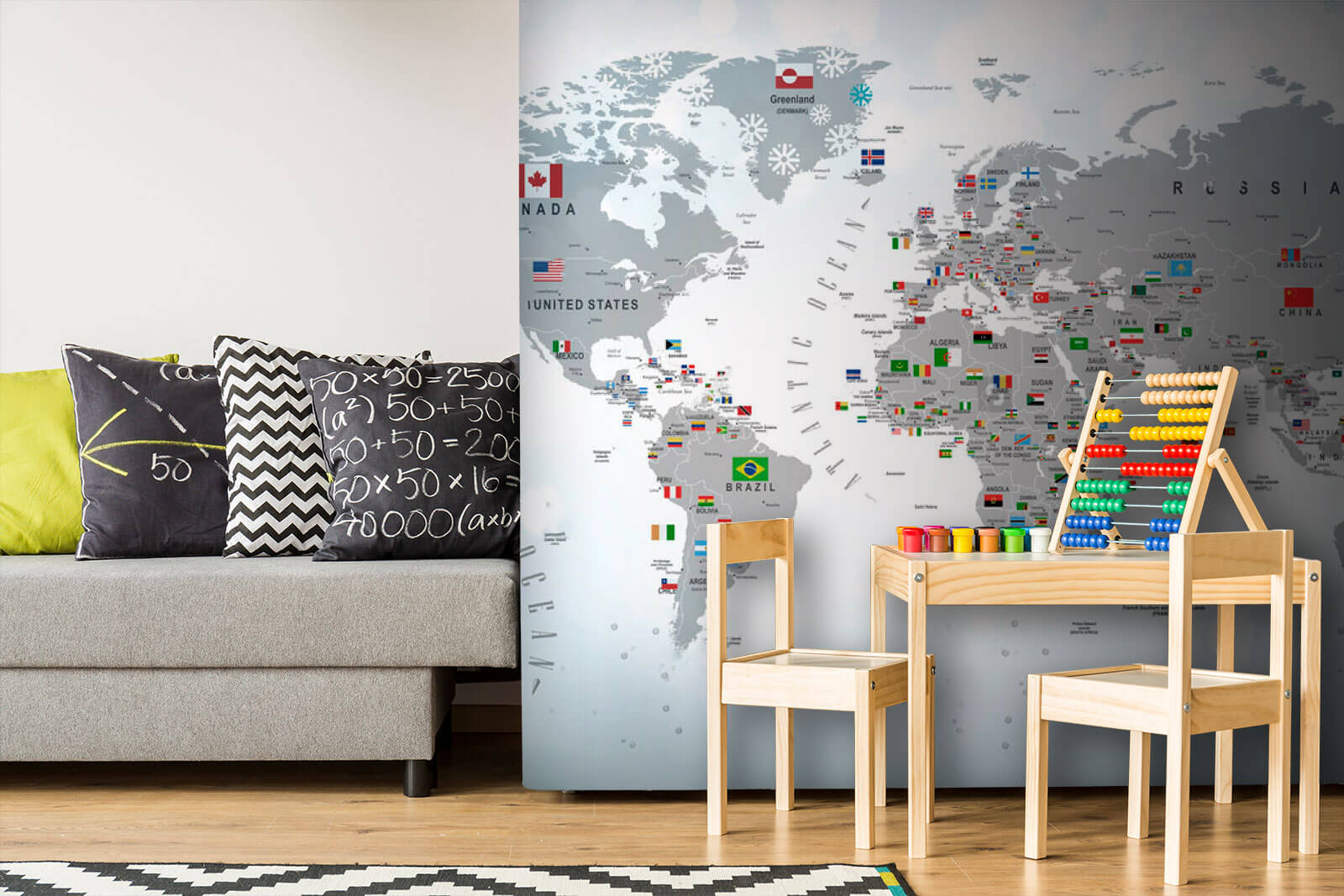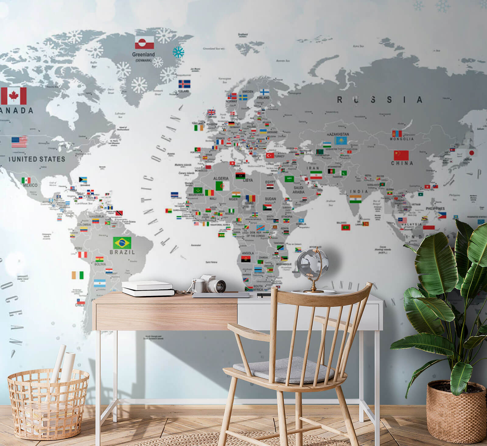 Imaginați-vă transformarea unui perete într-o aventură cartografică vibrantă – asta veți obține cu “Fototapet Map of Australia with Flags”. Aceasta nu este o hartă oarecare; este presărată cu steaguri ale lumii, ceea ce o face un accesoriu jucăuș și educativ pentru orice cameră. Imaginați-vă acest lucru – copii care își trasează degetele peste țări, explorează culturi noi și visează la aventuri. Perfect pentru mințile curioase! Culorile sunt luminoase și vesele, adăugând instantaneu viață spațiului tău. Este ca și cum ai invita întreaga lume în casa ta! Fie că este pentru camera unui copil (bună, viitori exploratori!), o sală de clasă sau doar o întorsătură distractivă a decorului tău, această pictură murală stârnește imaginația și aduce un strop de farmec global. În plus, face parte din categoria Murale de perete cu harta Pământului pentru tineri – cât de tare este asta?
