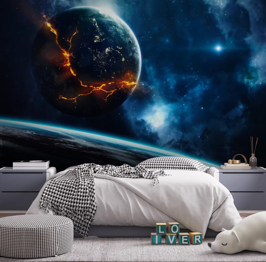 Imaginați-vă că vă treziți în fiecare zi în fața acestei uimitoare scene cosmice – cât de tare este? Peretele nostru mural “Planeta cu foc în fundal” aduce frumusețea dramatică a unei galaxii chiar în sufrageria dvs. (sau în biroul dvs., sau oriunde doriți să adăugați un strop de farmec ceresc). Această pictură murală nu este doar extrem de vibrantă, ci pare aproape vie, cu acea planetă în flăcări care pocnește în albastrul profund și misterios al galaxiei. Este ca și cum ai avea o fereastră spre un alt univers, care stârnește uimire, curiozitate și, poate, un pic de visare cu ochii deschiși la aventuri îndepărtate. Fie că sunteți pasionat de astronomie sau pur și simplu iubiți decorul îndrăzneț și unic, această piesă va stârni discuții. Oaspeții dvs. ar putea chiar să simtă o conexiune cosmică mai puternică. Și să fim sinceri, cui nu i-ar prinde bine un pic mai multă magie în viața lor? Perfectă pentru cei care apreciază vastitatea impresionantă a spațiului cu o atingere de foc!