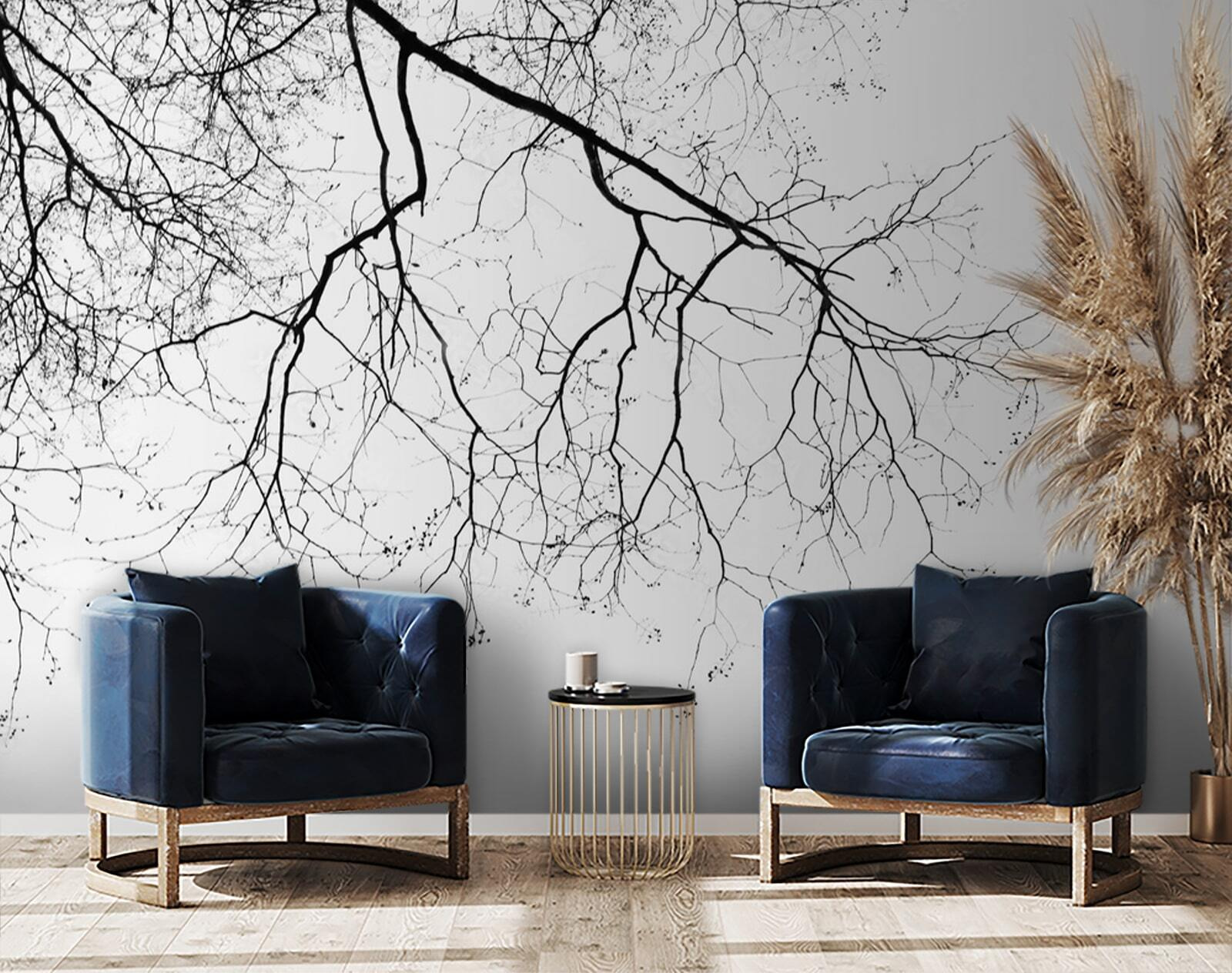 Căutați să adăugați o notă de natură spațiului dvs. fără mizeria frunzelor care cad? Aruncați o privire la această pictură murală uimitoare cu ramuri goale care creează modele complicate. Este ca și cum ai aduce calmul unei păduri înzăpezite chiar în sufrageria ta. Ușor de privit și plin de dramatism subtil, se simte ca un moment înghețat în timp, de genul celui în care speri în secret că s-ar putea transforma într-un spirit de copac.