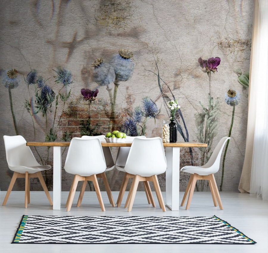 Transformați orice spațiu cu această pictură murală uimitoare care prezintă un colaj botanic pe un fundal frumos stratificat. Imaginați-vă că intrați într-o cameră în care florile delicate dansează ușor pe un șoptit de farmec vintage. Culorile estompate evocă un sentiment de calm, invitându-vă să luați o pauză și să respirați adânc. Este ca și cum ai aduce o mică grădină în interior, fără a fi nevoie să o uzi. Perfectă pentru un colțișor confortabil sau pentru acel perete gol care imploră personalitate, această pictură murală adaugă profunzime și căldură. Nu este doar decor; este o stare de spirit, o vibrație, un memento subtil pentru a încetini și a aprecia arta naturii.