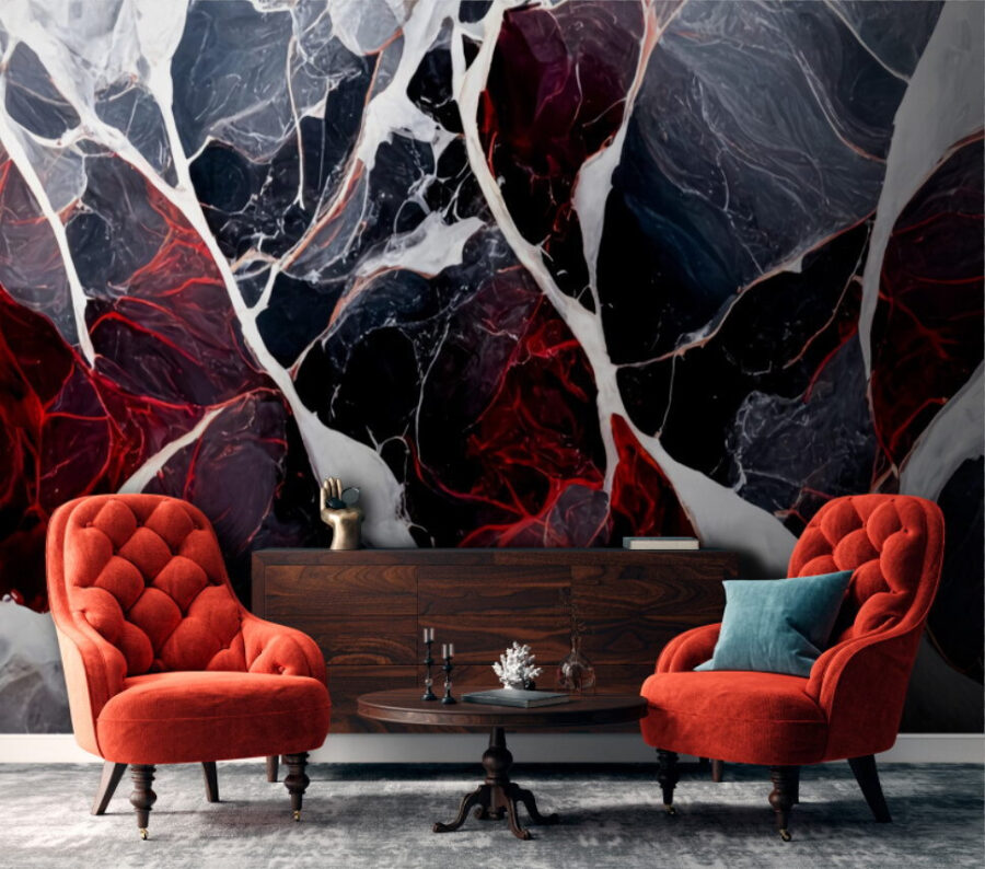 Te-ai gândit vreodată că peretele tău ar putea fi mai mult decât, știi tu, un perete? Permiteți-mi să vă prezint această capodoperă roșie și neagră. Este ca și cum ai avea o operă de artă abstractă chiar în sufrageria ta, doar că nu trebuie să fii atât de elegant în legătură cu asta. Această pictură murală îmbină negri profunzi, gri fumuriu și roșu aprins într-un mod care strigă “Sunt mult mai tare decât un perete pictat”. Imaginați-vă acest lucru: veniți acasă după o zi lungă și, în loc de bejul plictisitor, sunteți întâmpinat de acest design îndrăzneț care vă energizează și vă reconfortează în același timp. Are acel farmec dramatic al marmurei fără atingerea rece – perfect pentru colțuri confortabile sau pentru acel perete care are nevoie de un pic mai mult… oomph. Transformă-ți spațiul într-o galerie sau doar într-un loc în care conversațiile încep de la sine. Haideți, pierdeți-vă în adâncurile sale!