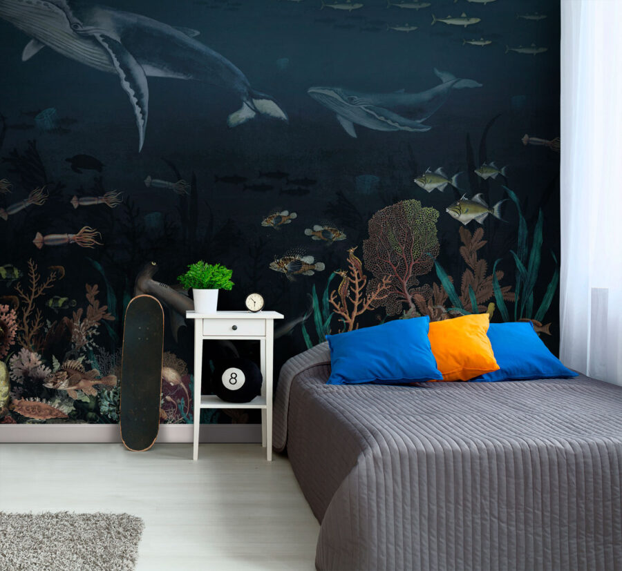 Scufundați-vă într-o lume a minunilor cu această pictură murală captivantă cu balene alunecând grațios prin adâncuri! Imaginează-ți – intri în cameră și bam, apare o balenă maiestuoasă înotând alături de pești colorați, țestoase marine și corali vibranți. Aduce instantaneu un sentiment de calm și aventură. Perfectă pentru camera unui copil sau pentru un spațiu de inspirație marină, această pictură murală stârnește imaginația și te face să visezi la escapade oceanice. Imaginați-vă poveștile pe care le-ar putea spune! Fie că este ora de joacă sau ora de culcare confortabilă, această pictură murală pregătește scena pentru nenumărate aventuri acvatice – și cine nu și-ar dori această magie pe pereții săi? Te vei simți ca și cum ai avea o bucățică de ocean chiar la tine acasă.