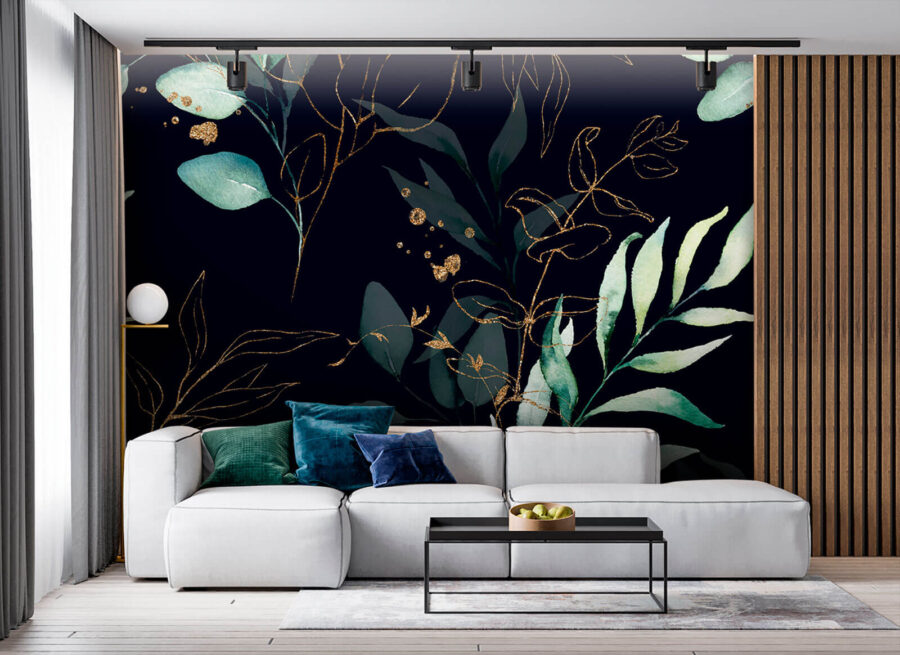 Transformați orice cameră într-o oază de relaxare cu această pictură murală uimitoare care prezintă un model delicat de frunze și ramuri. Fundalul bogat și întunecat scoate în evidență frunzele verzi, creând o atmosferă primitoare, confortabilă și sofisticată în același timp. Imaginați-vă că vă treziți în fiecare zi în fața acestei priveliști senine – natura la îndemâna dumneavoastră, fără a fi nevoie de un deget verde! Este ca o mini pădure în spațiul dvs. de locuit. Perfectă pentru un colțișor liniștit sau pentru un perete statement, invită pe toată lumea să ia o pauză și să respire ușor. În plus, este o sursă fantastică de conversație – cine nu ar vrea să știe povestea din spatele acestor frunze superbe? Pregătește-te ca pereții tăi să devină instantaneu o atracție pentru ochi.