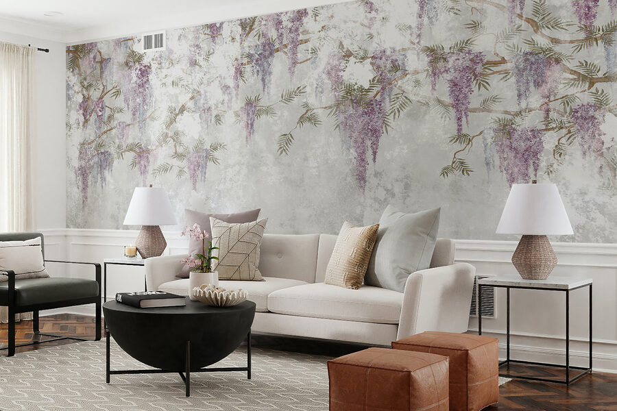 Imaginați-vă că pășiți într-un spațiu senin în care flori mov delicate dansează pe o pânză albă moale. Această pictură murală este ca o șoaptă blândă de primăvară, aducând viață și culoare în orice cameră. Imaginați-vă un colț de lectură confortabil sau o bucătărie luminoasă care se simte dintr-o dată ca o grădină încântătoare. Ea stârnește un sentiment de calm, transformând pereții într-o evadare de vis. Prietenii s-ar putea întreba chiar dacă un florar a apărut pe neașteptate. Perfect pentru oricine iubește florile, dar dorește și o notă de sofisticare. Transformați-vă spațiul și priviți cum se desfășoară magia!