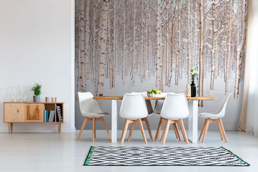 Imaginați-vă că pășiți într-o pădure de mesteceni cu zăpadă senină, fără să părăsiți camera de zi. Această pictură murală șoptește liniște și un farmec proaspăt de iarnă. Acești copaci albi și subțiri, acoperiți cu zăpadă fină, creează o atmosferă confortabilă care vă invită să scăpați de haosul vieții de zi cu zi. Imaginați-vă cum vă relaxați cu o carte bună și o băutură caldă, cu peisajul liniștit care vă înconjoară, făcând chiar și cele mai gri zile să pară luminoase. Este ca și cum ai avea opera de artă a naturii chiar la tine acasă, transformând orice perete într-un refugiu liniștit. Perfect pentru a visa cu ochii deschiși sau doar pentru a vă bucura de frumusețea iernii, în interior sau în exterior!