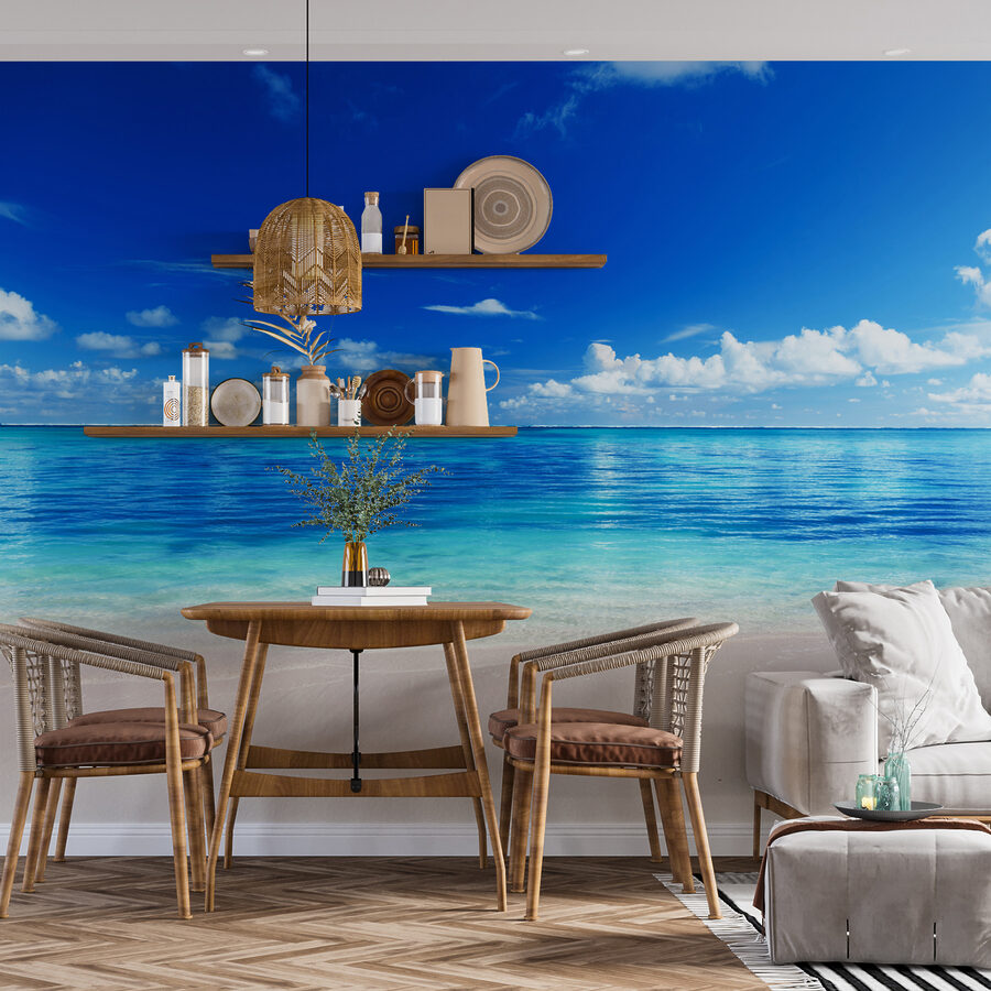 Ai visat vreodată să ai o felie de paradis chiar în sufrageria ta? Această pictură murală, numită pe bună dreptate “Cer albastru cu nori”, ar putea fi soluția potrivită. Imaginați-vă că vă ridicați privirea de pe canapea și sunteți transportat instantaneu pe un litoral liniștit – valuri blânde, cer azuriu presărat cu nori pufoși. Este ca o mini-vacanță de fiecare dată când vă uitați la perete. Perfect pentru a adăuga o notă de calm în orice spațiu, fie că este vorba de un colț de lectură confortabil sau de o zonă de luat masa aglomerată. Imaginați-vă că prietenii vin la voi și simt instantaneu acel moment ahhhh, ca și cum ar fi pășit într-o cabană de pe plajă. Inspirați, expirați și lăsați liniștea să vă cuprindă – nu este nevoie de nisip în pantofi!
