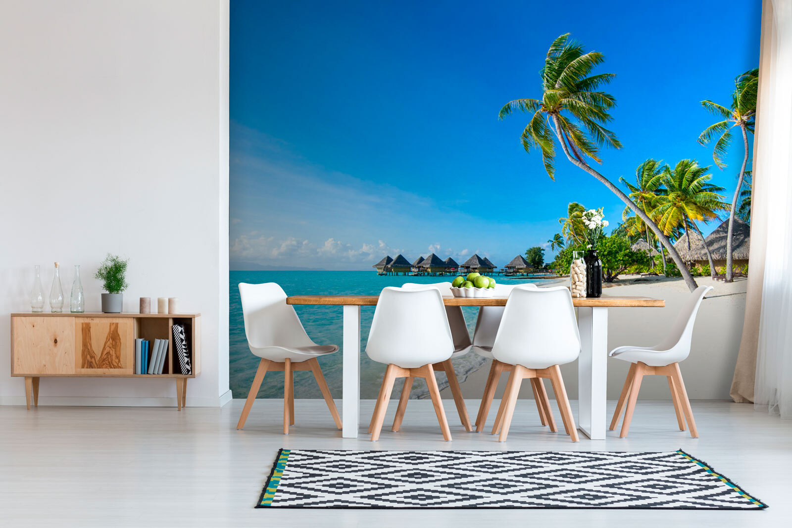 Imaginați-vă că vă treziți în fiecare zi cu o priveliște a unei plaje frumoase, cu palmieri legănându-se ușor în briză. Această pictură murală, intitulată “Beach with Palm Trees and Straw Umbrellas” (Plajă cu palmieri și umbrele de paie), aduce acea atmosferă de vis la malul mării chiar în camera dvs. Fie că doriți să vă amintiți de o vacanță trecută, fie că doriți doar să insuflați liniște spațiului dumneavoastră, acest design este perfect. Cerul de un albastru intens, apele limpezi turcoaz și umbrelele de paie primitoare vă transportă instantaneu într-un paradis relaxat și însorit. Perfect pentru orice iubitor al coastei, designul face o declarație fără a fi prea zgomotos – este mai degrabă un îndemn prietenos de a o lua mai ușor, poate chiar cu o carte sub un palmier imaginar. Imaginați-vă că primiți prieteni și îi priviți invidioși cum pășesc în camera dvs. transformată. Este ceva în legătură cu unduirea moale a valurilor și silueta îndepărtată a colibelor de vis care calmează sufletul. Așadar, dați-i drumul, transformați-vă peretele într-o fereastră spre paradis – este cel mai bun lucru pe lângă a fi acolo!