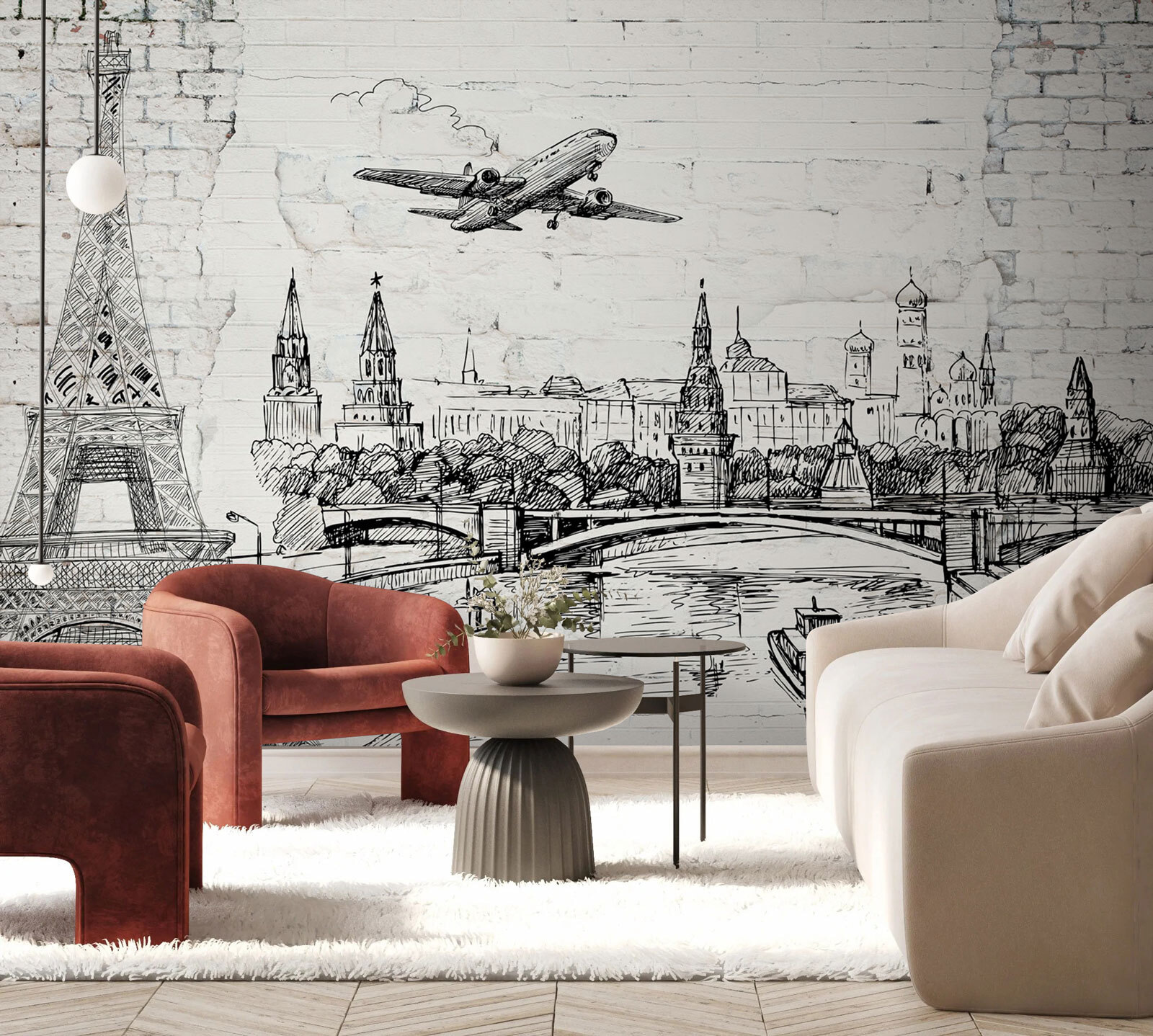 Transform a plain wall into a conversation starter with this striking wall mural, featuring a sketch-style cityscape and an iconic bridge. It’s like taking a mini vacation each time you step into the room—who doesn’t want a view of the Eiffel Tower and the Kremlin? Imagine sipping your morning coffee, daydreaming about travels, or planning your next adventure. The black-and-white design adds a chic vibe, making it easy to match with any decor. Plus, it’s sure to spark curiosity—your friends might think you’ve just come back from a whirlwind tour! A splash of culture on your wall—perfect for those wanderlust-filled hearts.