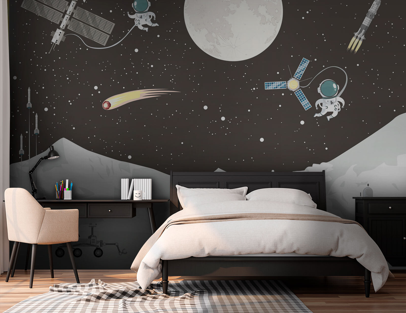 Ați visat vreodată să plutiți în derivă printre stele? Ei bine, această pictură murală “Lună plină pe cer” ar putea da viață visului cosmic. Perfectă pentru visători, bufnițe de noapte și entuziaști ai spațiului, aceasta transformă orice cameră într-o escapadă galactică. Imaginați-vă că veniți acasă după o zi lungă, vă așezați pe canapea și simțiți că aveți un loc în primul rând în univers. Este ca o evadare nocturnă, fără navă spațială! Munți luminați de lună, astronauți plutind în jur – totul este aici, emițând o vibrație care este atât aventuroasă, cât și liniștitoare. Ideal pentru camera unui copil, spațiul ar putea chiar inspira un viitor astronaut sau doi! Este un accesoriu jucăuș, dar senin pentru orice perete, care stârnește imaginația și un sentiment de uimire.