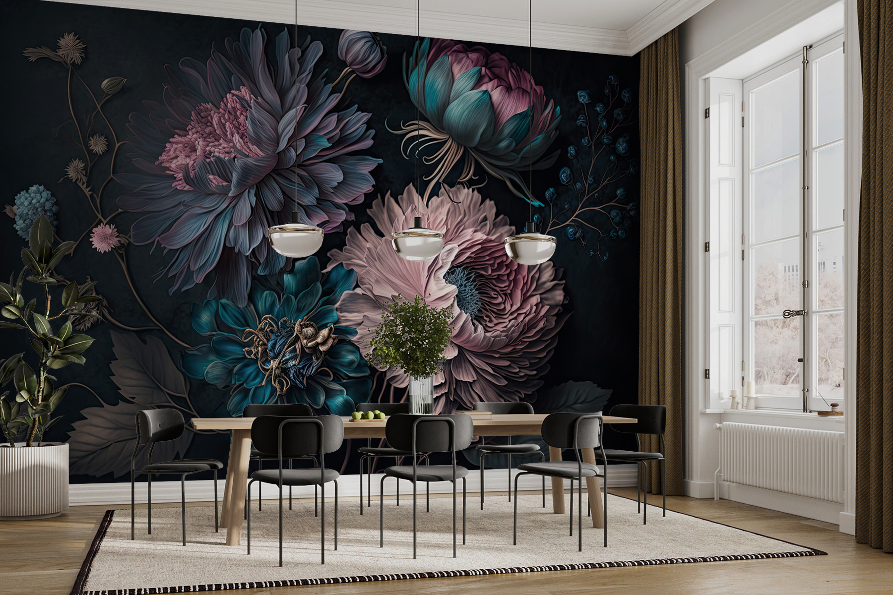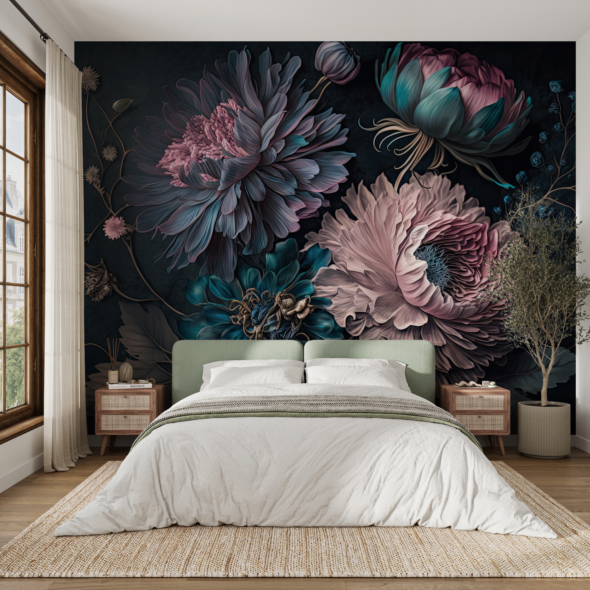 Transformați orice spațiu cu această pictură murală uimitoare cu flori vibrante într-un aranjament magic. Este ca și cum ai aduce o grădină în interior, fără pământ murdar sau gândaci enervanți. Imaginați-vă că vă treziți în fiecare zi în fața acestor flori frumoase! Culorile bogate creează o atmosferă confortabilă și primitoare, perfectă pentru camerele de zi sau colțurile confortabile. Imaginați-vă găzduind prieteni – toată lumea este atrasă de acel perete, minunându-se de acele petale complicate. Este un starter instantaneu de conversație, credeți-mă. Nu este nevoie de un deget verde aici, ci doar de dragoste pentru frumos și de un strop de creativitate. Arta de perete nu a fost niciodată atât de plină de viață!
