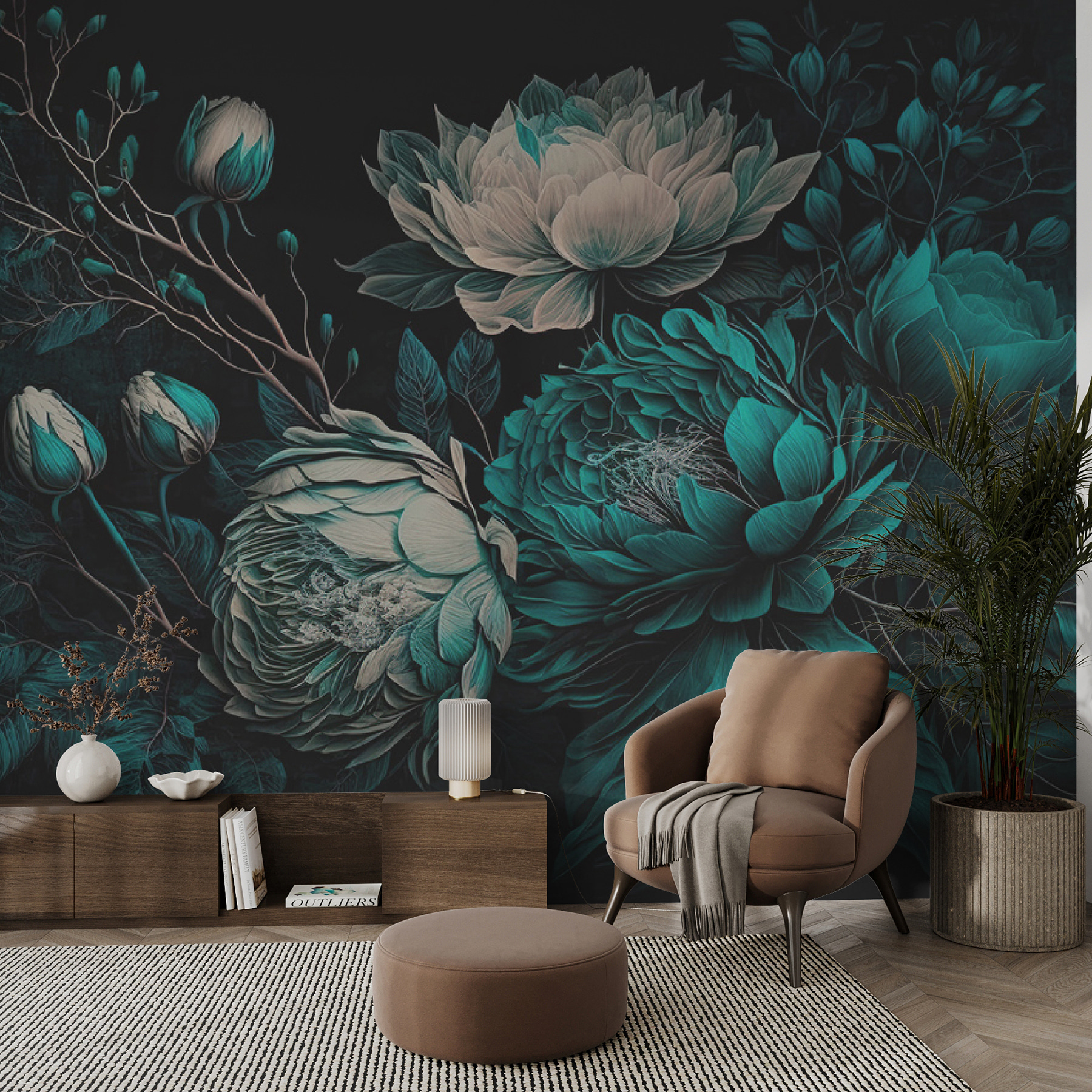 Imaginați-vă că pășiți într-o cameră în care florile înfloresc în nuanțe profunde de teal. Această pictură murală, “Vibrant Flowers Blossom”, este ca și cum ai avea o petrecere în grădină în interior, fără bâzâitul albinelor. Are acea magie 3D – aceste flori arată de parcă ar putea înflori în orice moment. Culorile teal sunt liniștitoare, dar bogate. Perfect pentru un living sau un dormitor care are nevoie de o notă de dramatism.