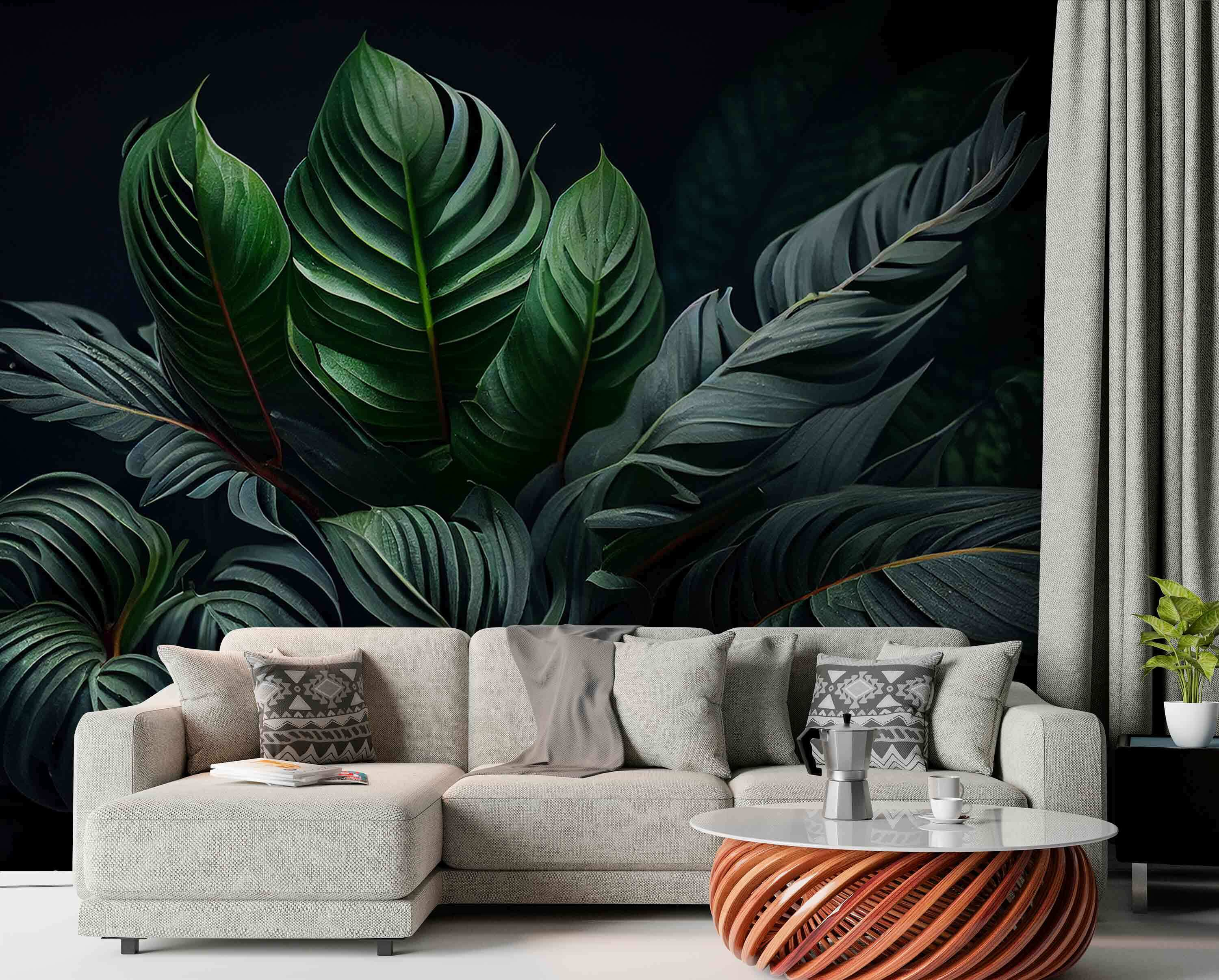 Transform a dull wall into a lush escape with this stunning mural of green foliage and dim light. Imagine stepping into a serene jungle, where the deepest greens whisper the secrets of nature. It’s like inviting a peaceful forest right into your home—all without the outdoor bugs! Perfect for a cozy reading nook or that one wall that needs a little love. Guests might even forget they’re indoors—it’s that immersive. Hang it up, kick back, and let those vibrant leaves inspire your next adventure or maybe just your next cup of tea.