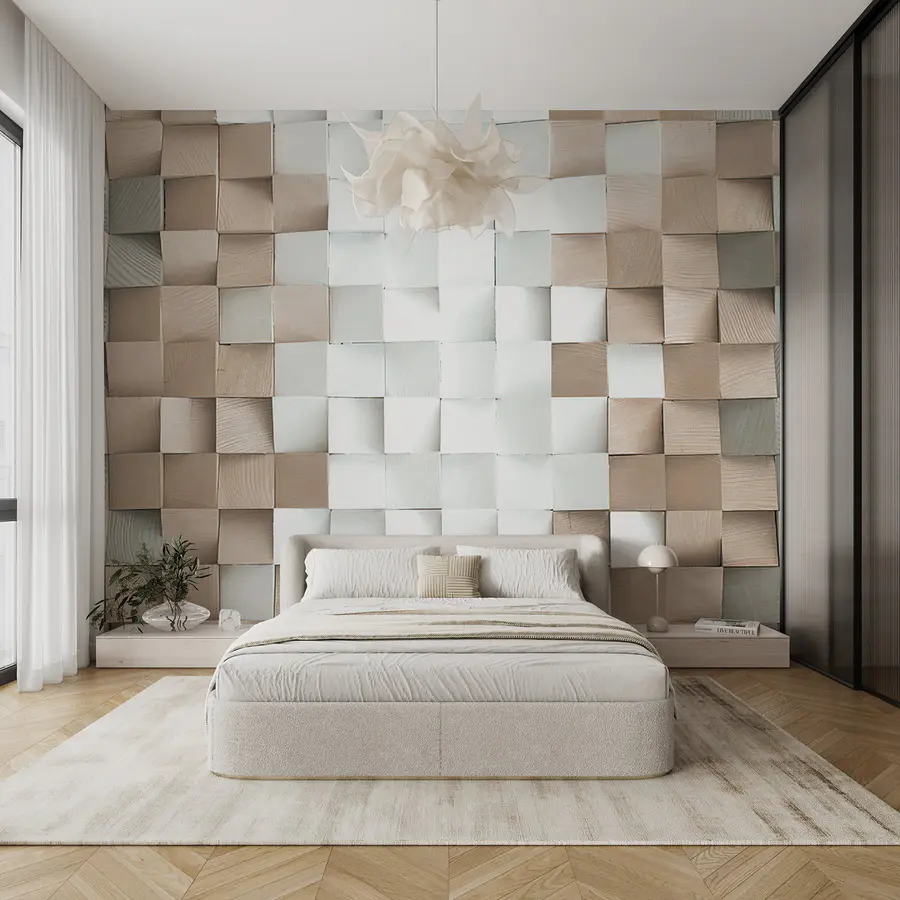 Transformați un perete simplu într-un refugiu confortabil cu această pictură murală fermecătoare. Imaginați-vă că pășiți într-o cameră proaspătă și aerisită, în care modelele moi de bej și alb joacă împreună ca și cum ar avea o discuție prietenoasă. Designul geometric aduce o profunzime subtilă care atrage privirea, dar nu strigă după atenție – un echilibru care îl face perfect pentru orice spațiu. Fie că este vorba de camera de zi în care se adună prietenii sau de un dormitor senin, această pictură murală invită la căldură și la o notă de rafinament. Este ca și cum ai oferi peretelui tău o mică petrecere în care să te îmbraci – nu este nevoie de o ținută elegantă! Lăsați această pictură murală să fie fundalul pentru râsete, cărți bune sau momente liniștite cu o ceașcă de ceai, creând un spațiu care este la fel de plin de viață sau relaxat ca și dumneavoastră. Simplu, primitor și absolut încântător, este tot ceea ce un perete vrea să fie.