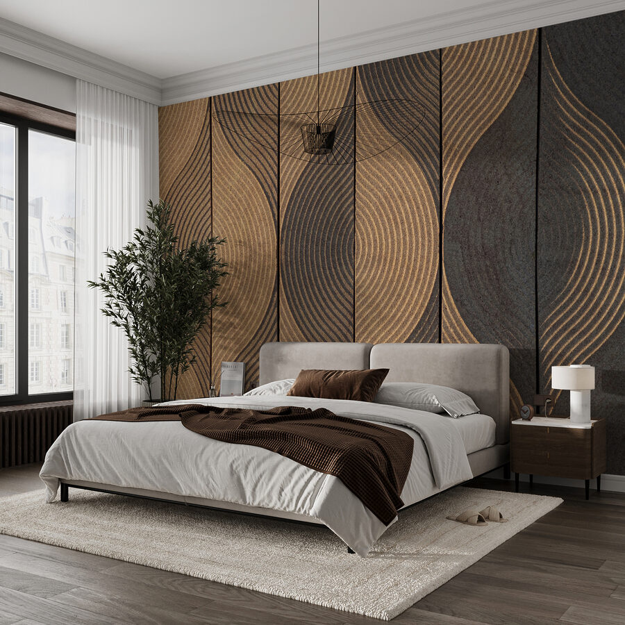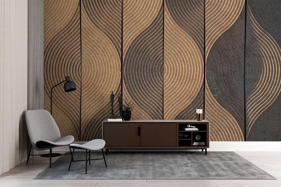 Imaginați-vă că vă relaxați într-o cameră cu pereți care vă aduc instantaneu o vibrație calmă, pământie – asta face această pictură murală. La propriu, este ca și cum ai avea o grădină zen pe perete. Aceste modele de valuri de pe panourile de lemn creează un ritm natural superb care te atrage. Este cam hipnotic, nu-i așa?