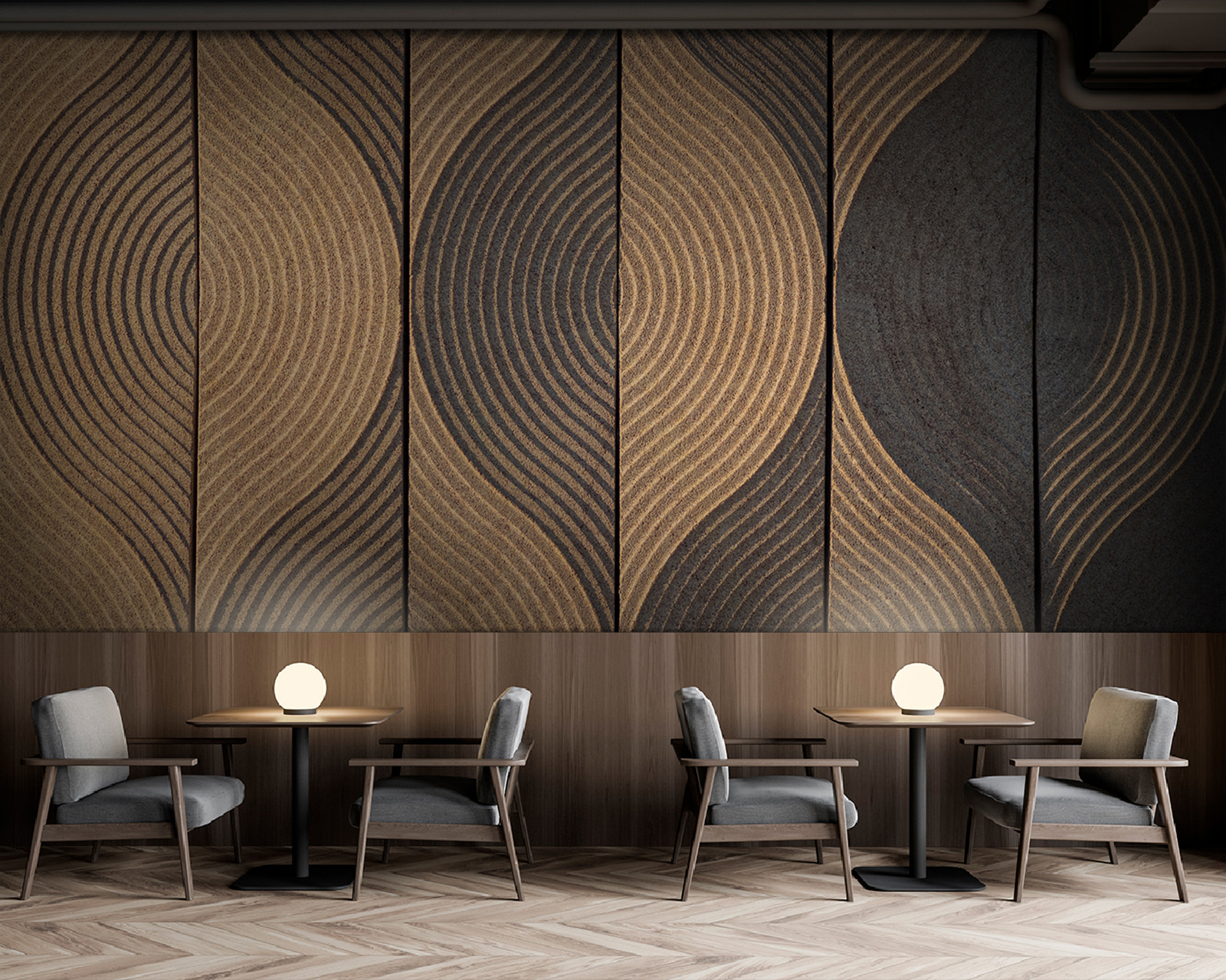 Imaginați-vă că vă relaxați într-o cameră cu pereți care vă aduc instantaneu o vibrație calmă, pământie – asta face această pictură murală. La propriu, este ca și cum ai avea o grădină zen pe perete. Aceste modele de valuri de pe panourile de lemn creează un ritm natural superb care te atrage. Este cam hipnotic, nu-i așa?