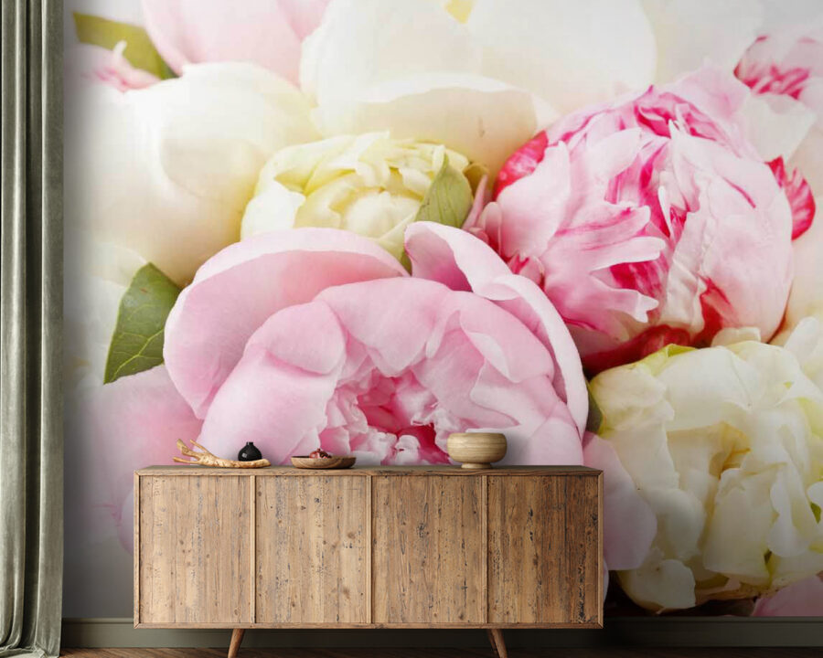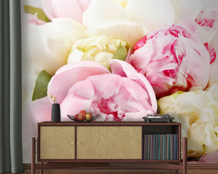 Imaginați-vă că intrați într-o cameră în care flori roz și albe vibrante înfloresc ca o surpriză fericită într-o zi însorită. Acest fototapet, numit în mod potrivit „Buchet de flori roz și albe”, vă învăluie spațiul într-o îmbrățișare florală delicată. Fiecare petală pare aproape vie, șoptind cuvinte dulci despre flori proaspete și picnicuri în grădină. Este ca și cum ați avea o petrecere eternă de primăvară chiar pe peretele dvs., fără strănuturi și polen!