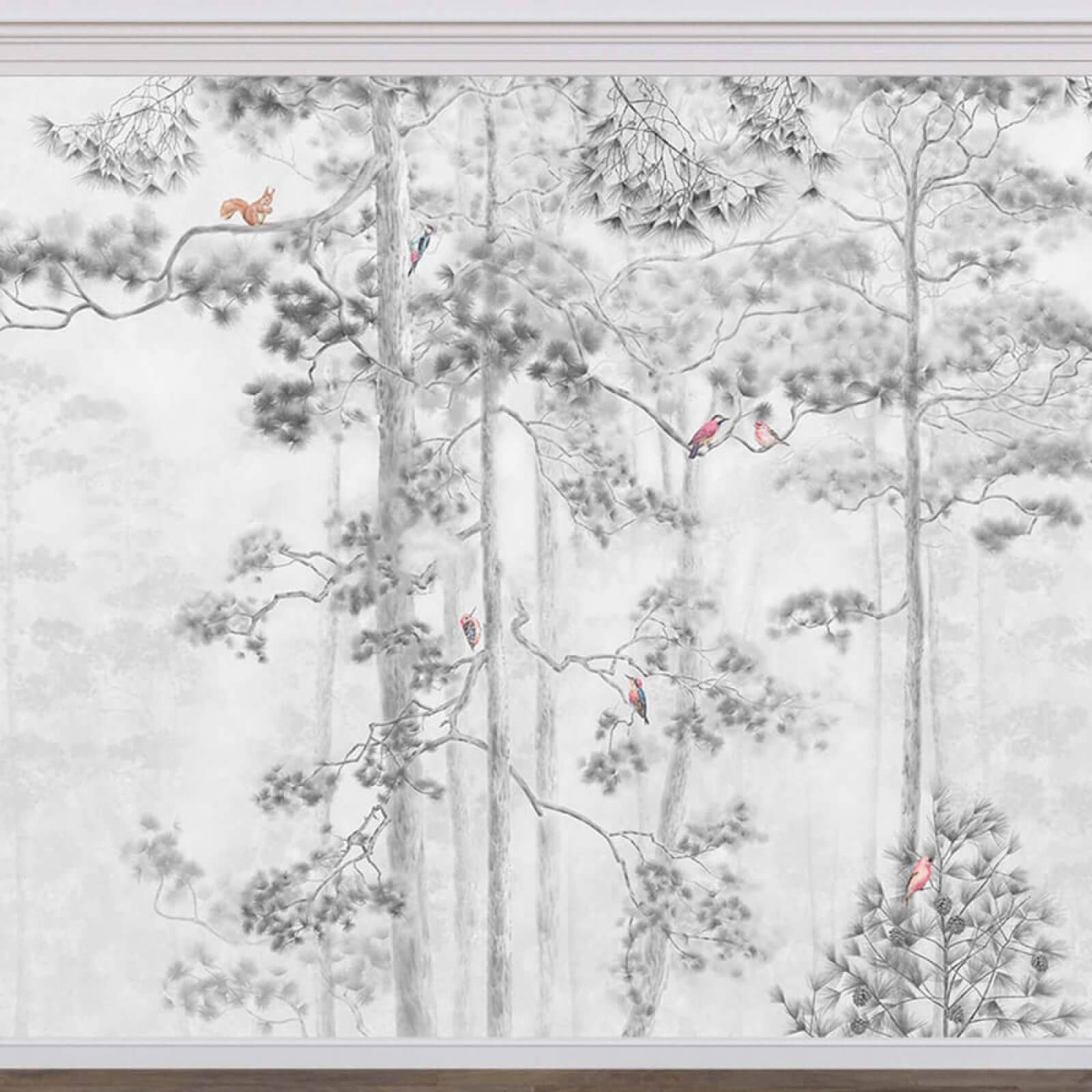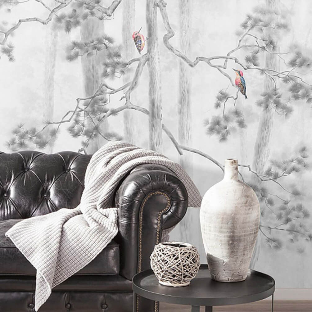 Aceasta nu este doar artă de perete; este o evadare într-o oază de pădure cu ceață chiar în casa ta. Nu este uimitor cum un pic de natură îți poate transforma spațiul? Oferiți pereților dvs. o gură de aer proaspăt cu acest mural minunat. S-ar putea să vă pierdeți în detalii – păsările acelea mici au o personalitate aparte!