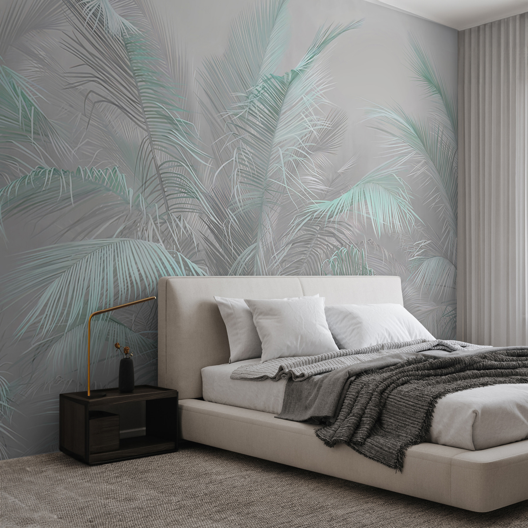 V-ați gândit vreodată să aduceți un mic paradis tropical chiar în camera dvs. de zi? Acest mural pastel cu frunze de palmier face exact asta! Cu vibrațiile sale blânde de ceață și verdele liniștitor, este ca și cum ați păși într-o grădină de vis, senină, de fiecare dată când vă uitați la perete. Imaginați-vă că veniți acasă după o zi lungă, vă dați jos pantofii și sunteți întâmpinați de acest strop liniștitor de natură – relaxare instantanee, nu-i așa?