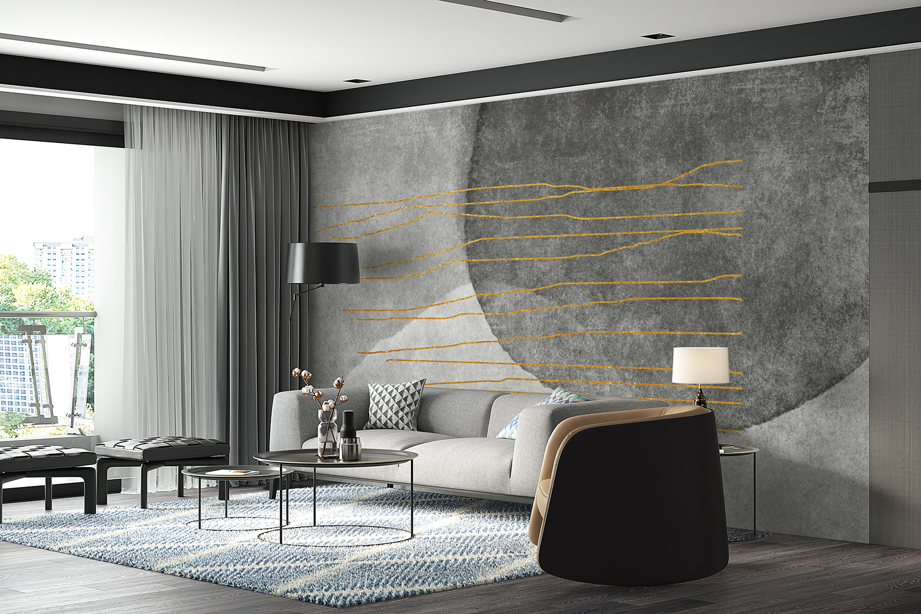 Imaginează-ți asta: îți inviți prietenii la tine, iar ochii lor sunt atrași instantaneu de pictura ta murală. S-ar putea să înceapă să discute despre cât de relaxant este, dar nu se pot abține să nu rânjească la acele linii jucăușe – contrastul dansează direct pe perete. Este ideală pentru o cameră de zi, un studio sau chiar un birou șic. Super versatil.