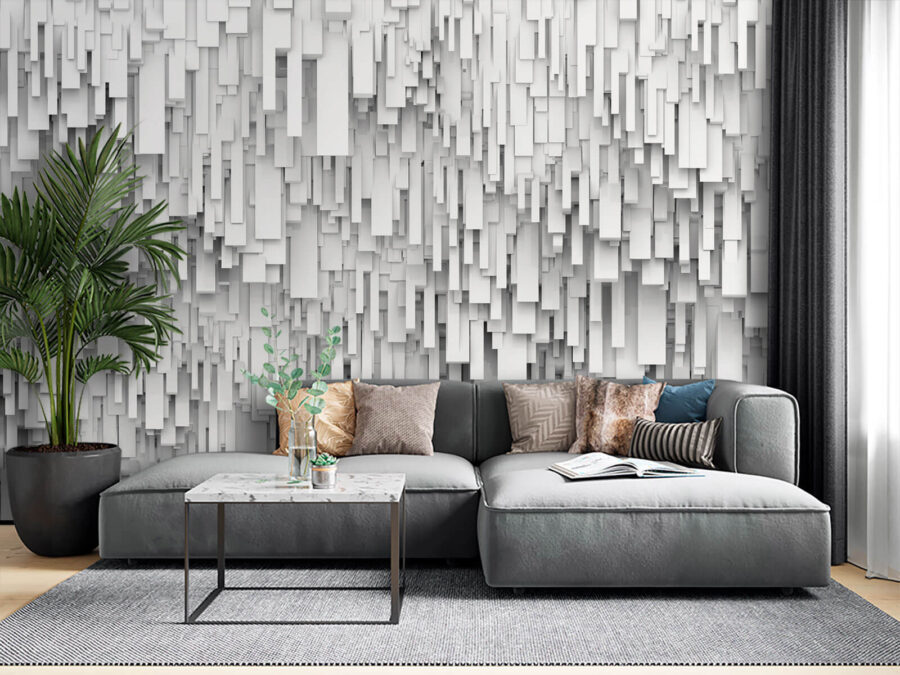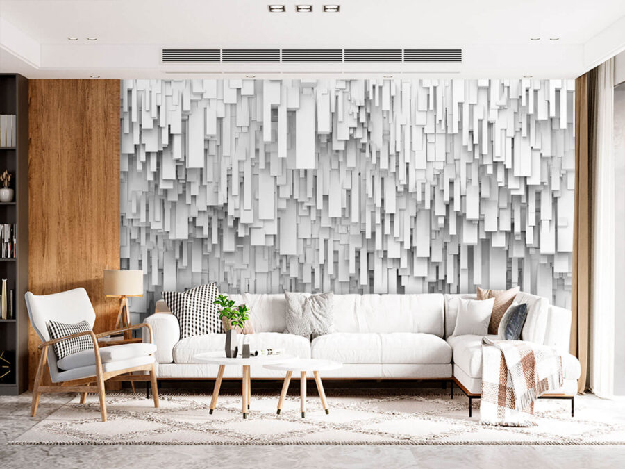 Transformați-vă spațiul cu acest fototapet atrăgător, care prezintă o serie de forme dreptunghiulare albe. Este ca o mică operă de artă modernă pictată direct pe perete! Imaginați-vă că intrați într-o cameră în care pereții șoptesc povești de eleganță contemporană. Jocul de lumini și umbre creează o atmosferă liniștitoare, perfectă pentru seri confortabile sau întâlniri pline de viață. Este un amestec de farmec geometric care te face să te simți atât de binevenit, încât ai putea să-ți dorești o ceașcă de cafea și o discuție relaxată. Perfect pentru cei care apreciază unicitatea și doresc ca decorul lor să aibă puțină personalitate!