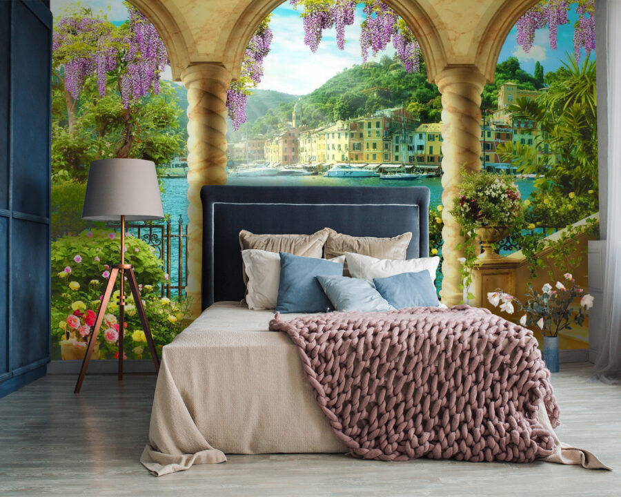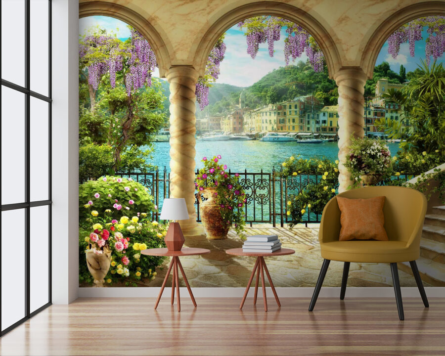 Imaginați-vă că vă uitați pe fereastră și sunteți transportat într-o grădină colorată cu vedere la un port liniștit. Este exact ceea ce vă oferă acest mural “Grădină colorată cu vedere la port”. Este ca o gură de aer proaspăt – chiar în sufrageria ta. Bunătatea florală se împletește cu cărări de piatră pitorești și peisaje calde, luminate de soare. Parcă ai intra într-o carte poștală de vis. Aproape că poți simți briza mării, nu-i așa?