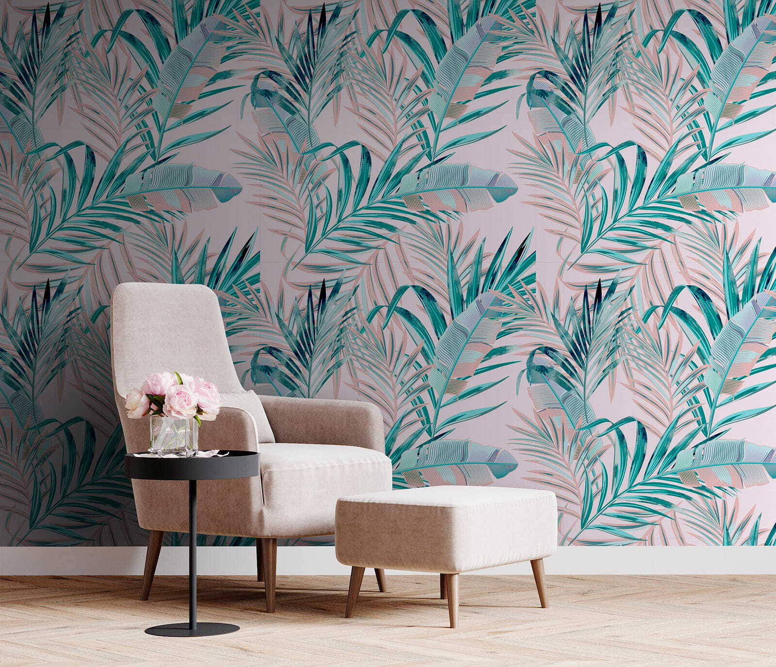 Transformați orice spațiu într-o oază tropicală cu acest tapet uimitor. Imaginați-vă frunze luxuriante dansând jucăuș pe un fundal roz pal – vorbim despre o piesă de efect! Este ca și cum ați invita o bucată de natură direct în casa dvs., fără insectele enervante. Imaginați-vă că stați pe canapea, lumina caldă filtrându-se prin frunze și poate chiar visând cu ochii deschiși la o escapadă la plajă. Fie că este în sufragerie, dormitor sau chiar într-o cafenea confortabilă, acest fototapet are farmecul de a stârni conversații. O modalitate perfectă de a da viață pereților plictisitori și cine nu și-ar dori un pic de frumusețe verde în viața sa?