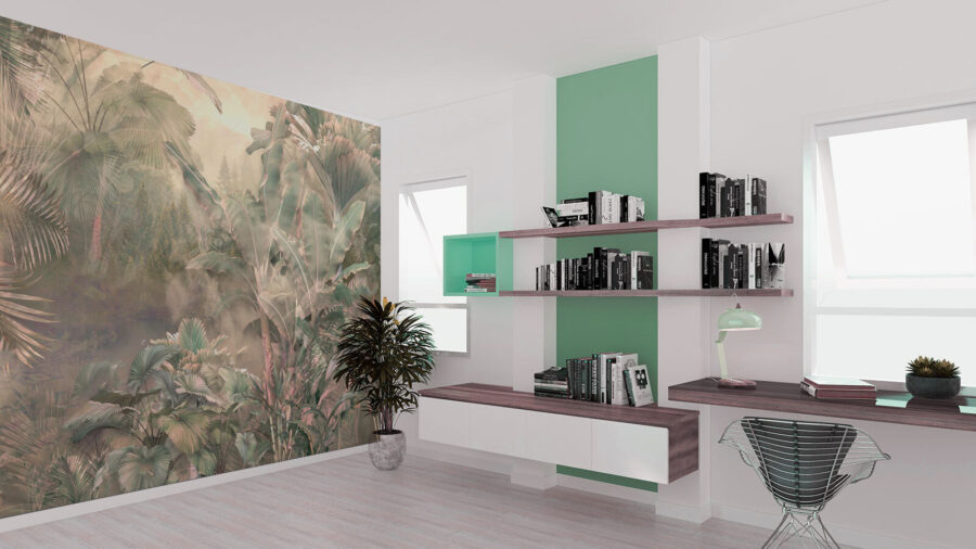 Transformați orice cameră într-un refugiu liniștit cu muralul „Pădure ceațoasă cu copaci și plante”. Imaginați-vă că pășiți într-o junglă ceațoasă, unde se amestecă verdele delicat și șoaptele naturii. Farmecul blând al acestui mural invită la liniște – perfect pentru spații confortabile sau chiar pentru biroul aglomerat care ar avea nevoie de un moment de zen. Frunzele luxuriante aproape că se leagănă în adierea vântului, simțiți? Imaginați-vă acele după-amieze leneșe, savurând ceaiul în timp ce vă imaginați că vă relaxați într-o pădure tropicală. O bucată din frumusețea naturii ajunge acasă și, să fim sinceri, cine nu și-ar dori asta? Adăugați câteva plante în ghivece și gata – atmosfera junglei este instantanee!