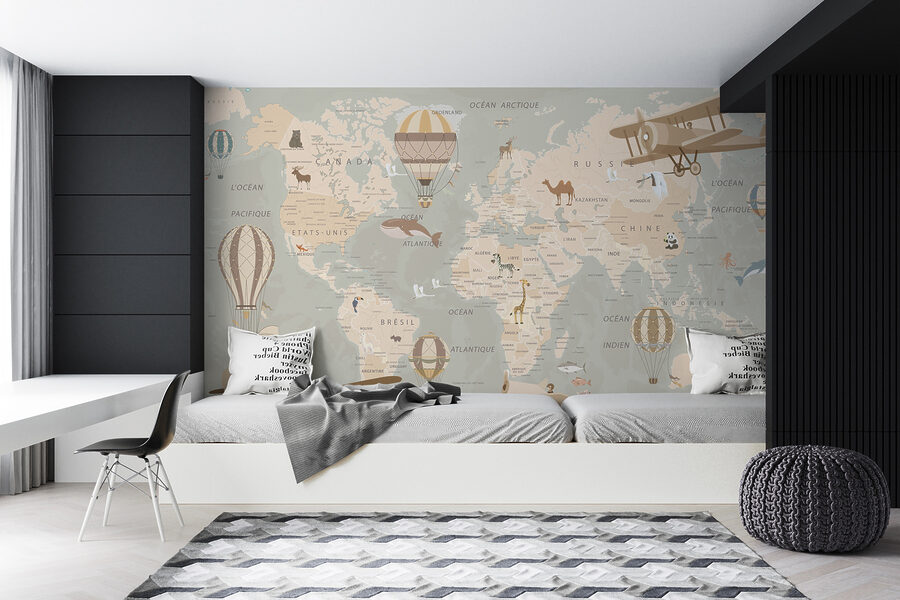 Imaginați-vă că vă treziți în fiecare zi la vederea baloanelor cu aer cald plutind pe o hartă a lumii – ce visător! Această pictură murală, intitulată “Balon cu aer cald pe cer”, combină fără efort dorința de a călători cu farmecul capricios al plutirii pe glob. Se regăsește în categorii precum “Picturi murale pentru copii” și “Picturi murale cu hărți ale Pământului”, așa că știi că este perfect dacă amenajezi camera unui copil sau dacă ești îndrăgostit nebunește de un decor unic. Imaginați-vă toate poveștile pe care le-ar putea inspira – călătorii imaginare prin deșerturi, jungle și oceane. Este ca un bilet spre aventură chiar în camera ta de zi sau în spațiul de joacă. În plus, culorile pastelate senine îți garantează practic că te vei simți puțin mai ușor, puțin mai lipsit de griji, de fiecare dată când te uiți la el.