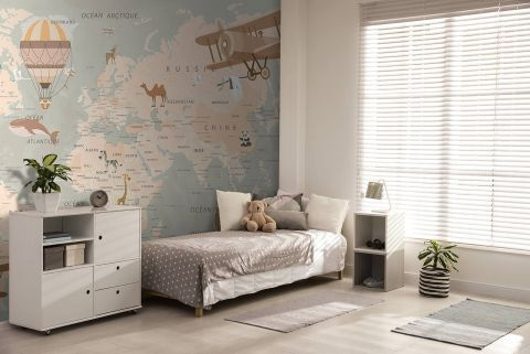 Imaginați-vă că vă treziți în fiecare zi la vederea baloanelor cu aer cald plutind pe o hartă a lumii – ce visător! Această pictură murală, intitulată “Balon cu aer cald pe cer”, combină fără efort dorința de a călători cu farmecul capricios al plutirii pe glob. Se regăsește în categorii precum “Picturi murale pentru copii” și “Picturi murale cu hărți ale Pământului”, așa că știi că este perfect dacă amenajezi camera unui copil sau dacă ești îndrăgostit nebunește de un decor unic. Imaginați-vă toate poveștile pe care le-ar putea inspira – călătorii imaginare prin deșerturi, jungle și oceane. Este ca un bilet spre aventură chiar în camera ta de zi sau în spațiul de joacă. În plus, culorile pastelate senine îți garantează practic că te vei simți puțin mai ușor, puțin mai lipsit de griji, de fiecare dată când te uiți la el.