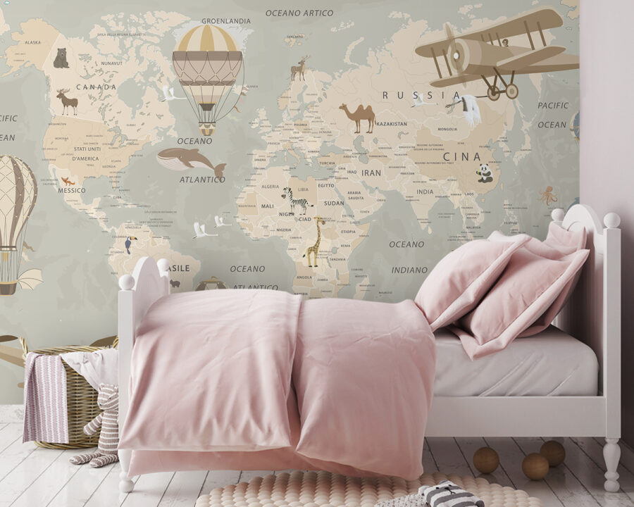 Imaginați-vă că pășiți într-o lume a aventurii de fiecare dată când intrați într-o cameră. Această pictură murală cu baloane cu aer cald înălțându-se deasupra unei hărți frumos ilustrate vă invită să visați cu ochii deschiși la ținuturi îndepărtate și călătorii magice. Cu culori vibrante și detalii fermecătoare, este ca și cum ai avea o mini-vacanță chiar pe peretele tău. Imaginați-vă copii sau prieteni adunați în jur, indicând locurile pe care vor să le viziteze sau amintindu-și de călătoriile făcute. Nu este doar o decorațiune; este un starter de conversație! Perfectă pentru o cameră de joacă, un birou sau un colțișor de lectură confortabil, această pictură murală aduce bucurie și curiozitate, făcând orice spațiu să pară puțin mai capricios. Cine nu și-ar dori să plutească pe un balon, cel puțin în imaginația sa?