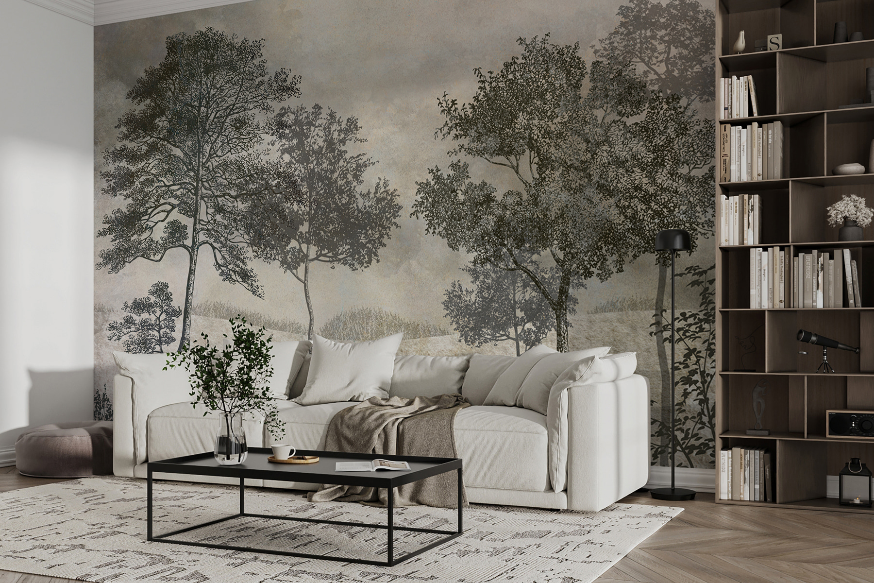 Imaginați-vă că vă relaxați într-o cameră care șoptește seninătate. Pictura murală “Copaci gravurați într-un peisaj senin” este ca o îmbrățișare ușoară din partea naturii. Aveți farmecul hipnotizant al lemnului cu o întorsătură contemporană – abstract, dar, cumva, atât de minunat de familiar. Imaginați-vă acest lucru: nuanțe blânde, linii complicate reprezentând copaci grațioși, transformându-vă instantaneu spațiul într-o oază de calm. Este ca și cum ați evada într-o pădure de vis, fără a fi nevoie să vă faceți bagajul. Perfect pentru după-amiezele leneșe de duminică sau atunci când ai nevoie de o pauză. Și sincer, are acel aer irezistibil de “de unde ai luat asta?”. Oferiți pereților dvs. o notă de pace – o merită.