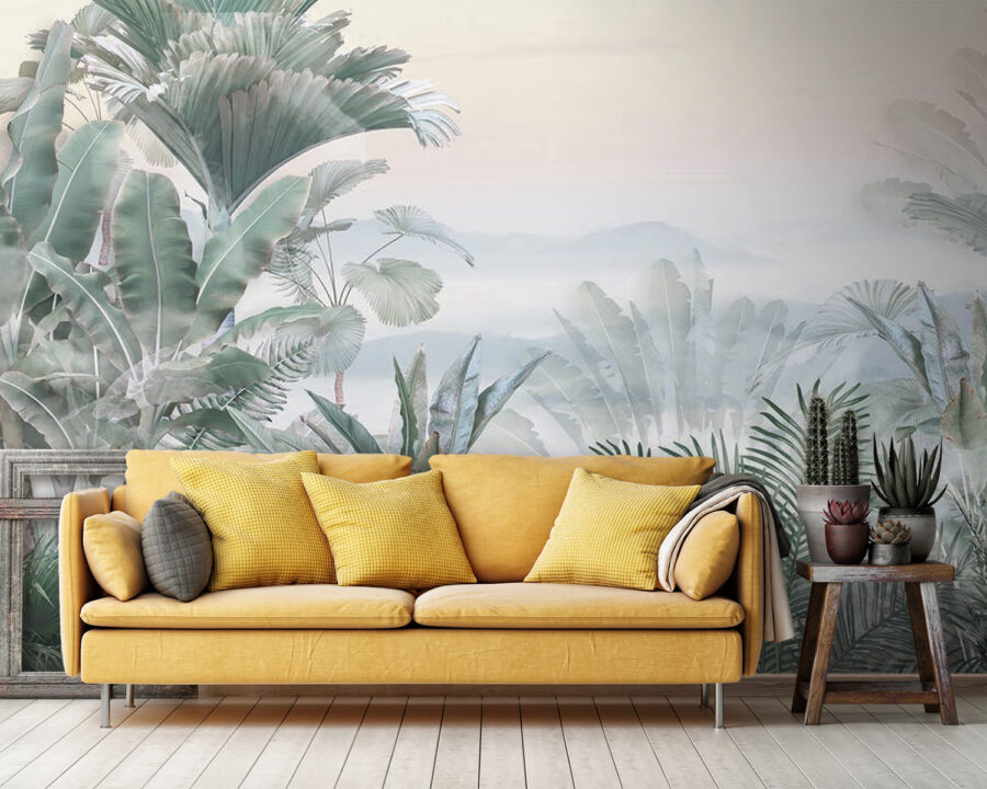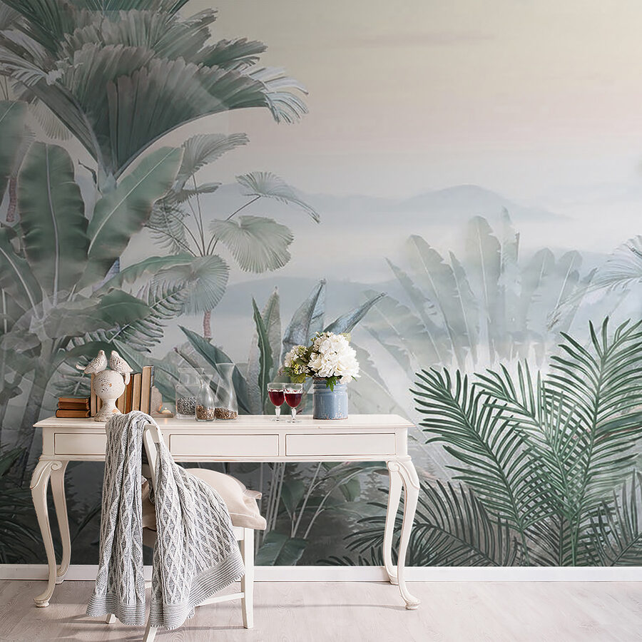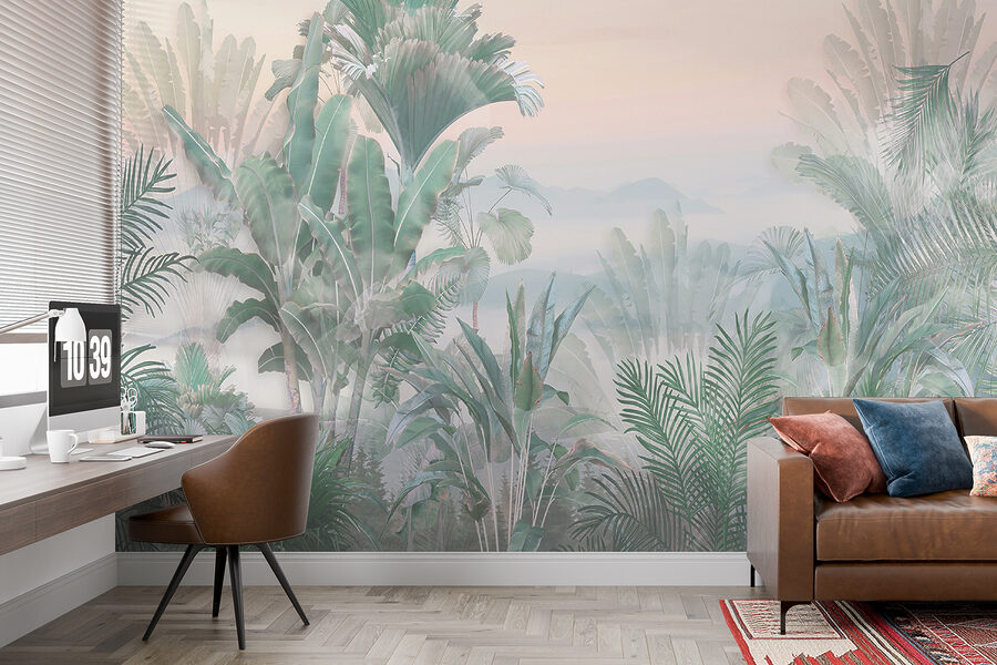 Unul dintre lucrurile amuzante este modul în care frunzele de palmier se amestecă în această ceață de vis. Are echilibrul perfect de a fi izbitoare, dar și liniștitoare. Iar dacă aveți degetul verde sau pur și simplu iubiți plantele, dar nu le puteți ține în viață, nu vă faceți griji! Această pictură murală oferă acea senzație luxuriantă, tropicală, fără o singură picătură de apă. Ideală pentru a vă pierde în gânduri, aducând un pic de zen în agitația și agitația vieții de zi cu zi.